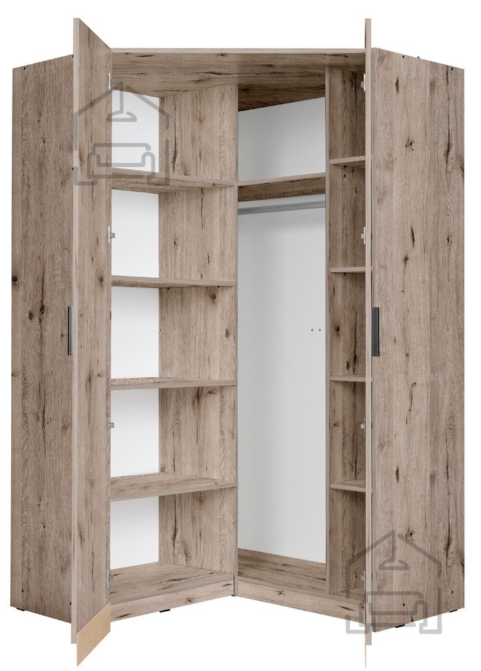 Lassen Sie Ihr Schlafzimmer, Ihren Flur oder Ihr Jugendzimmer stets ordentlich und harmonisch erscheinen. Der Eck-Kleiderschrank im Eichenton Wellington ist nicht nur ein Möbelstück, sondern ein praktischer Helfer, der Ihnen die Organisation von Kleidung und Accessoires erleichtert und zugleich mit seinem Aussehen den Raum bereichert. Wählen Sie eine hochwertige Lösung, die Schönheit und Funktionalität vereint, und schaffen Sie ein Zuhause, in dem Sie sich wohl und entspannt fühlen.