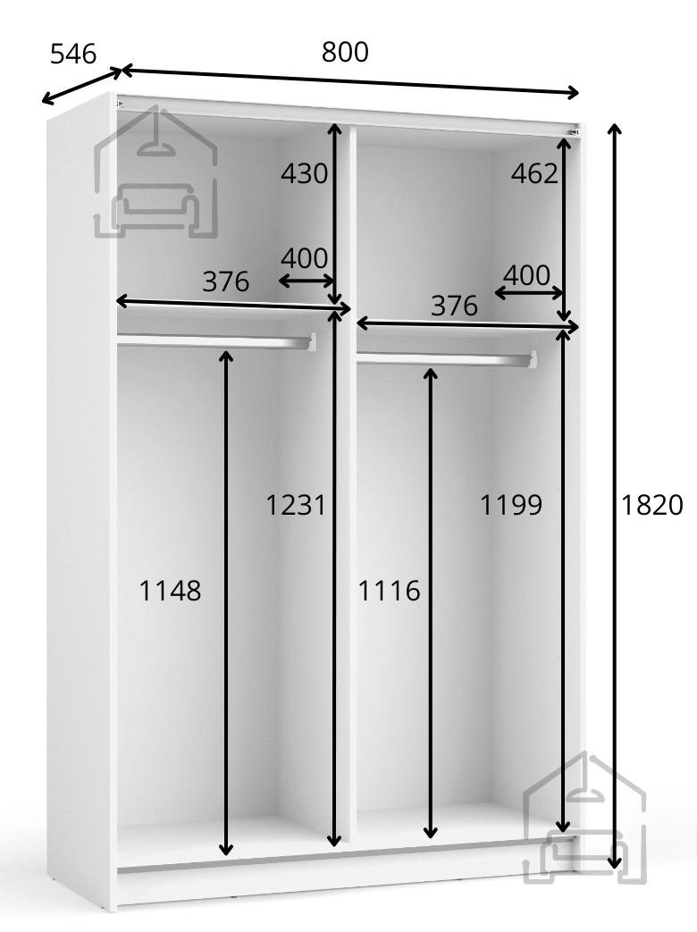 Der Schrank ist so konzipiert, dass er den Bedürfnissen des modernen Benutzers entspricht – von der einfachen Handhabung bis zur schnellen Übersicht der Garderobe. Das Schiebetürsystem ermöglicht eine leise und reibungslose Bewegung, was den Komfort im täglichen Gebrauch erhöht. Dank der hochwertigen Verarbeitung ist die Investition in diesen Schrank eine langfristige Lösung, die viele Jahre dienen wird, ohne an Attraktivität oder Funktionalität zu verlieren.