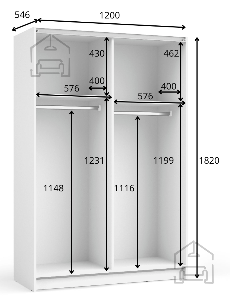 Der elegante Kleiderschrank mit Schiebetüren und Spiegel ist die perfekte Lösung für alle, die moderne und funktionale Möbel für ihr Zuhause suchen. Mit seiner minimalistischen weißen Farbe passt er sich leicht jedem Interieur an, während die Schiebetüren mit praktischem Spiegel für mehr Funktionalität sorgen und den Raum optisch vergrößern. Der Schrank besteht aus einer hochwertigen laminierten Platte mit einer Stärke von 16 mm, was Festigkeit, Langlebigkeit und einfache Reinigung gewährleistet. Die Rückwand ist mit einer 3 mm HDF-Platte verstärkt, und die Aluminiumgriffe verleihen einen modernen Touch und eine komfortable Handhabung.