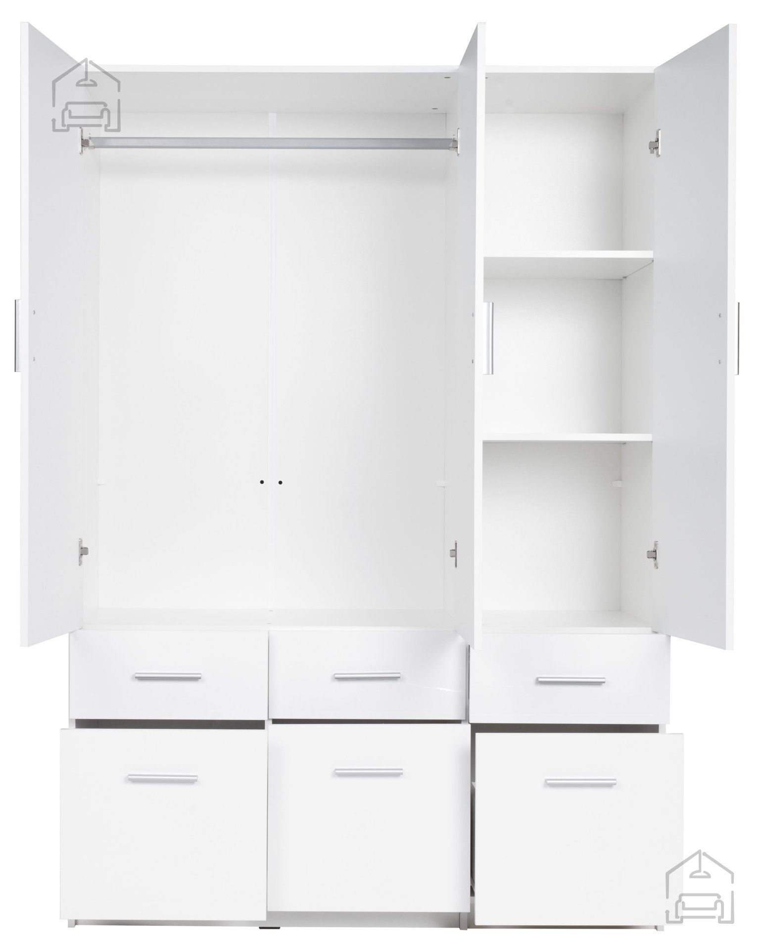 Die Wahl des richtigen Kleiderschranks ist eine langfristige Entscheidung. Dieses Modell vereint alle Eigenschaften, die ein moderner Käufer erwartet: Geräumigkeit, Funktionalität, Haltbarkeit und ein elegantes Erscheinungsbild. Außerdem kommt die weiße Farbe nie aus der Mode, sodass der Schrank immer frisch und modern aussieht. Mit seiner Hilfe behalten Sie leichter Ordnung im Raum, was zu einem angenehmen und gepflegten Zuhause beiträgt.