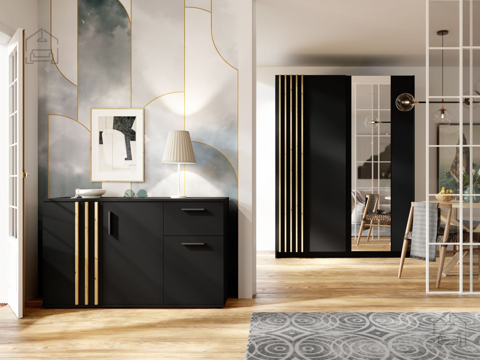 Elegant, funktional und modern – das sind die Eigenschaften, die die Kommode Toll 02 am besten beschreiben. Mit ihrem minimalistischen, aber zugleich warmen Erscheinungsbild in schwarzer Farbe mit kontrastierenden Leisten im Farbton Eiche Artisan wird dieses Möbelstück zu einem unverzichtbaren Teil jedes Wohnzimmers, Schlafzimmers oder Flurs. Durch die Kombination einer zeitlosen Farbpalette und eines praktischen Designs vereint sie Ästhetik und Funktionalität auf eine Weise, die selbst die anspruchsvollsten Käufer schätzen werden.