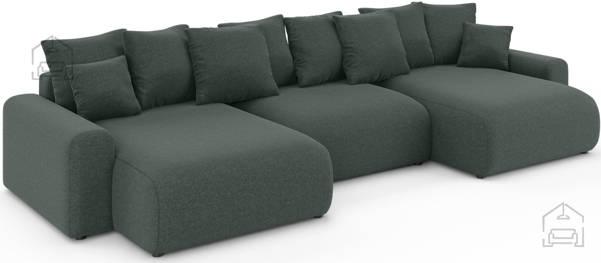 Diese Sitzgarnitur wurde mit Blick auf die Bedürfnisse moderner Familien in Deutschland entworfen. Sie bietet eine Kombination aus Funktionalität, Komfort und elegantem Aussehen, das jedes Wohnzimmer bereichern wird. Aufgrund ihrer Größe und U-Form ist sie ideal für großzügige Räume, wo sie als zentrales Möbelstück zur Geltung kommt.
