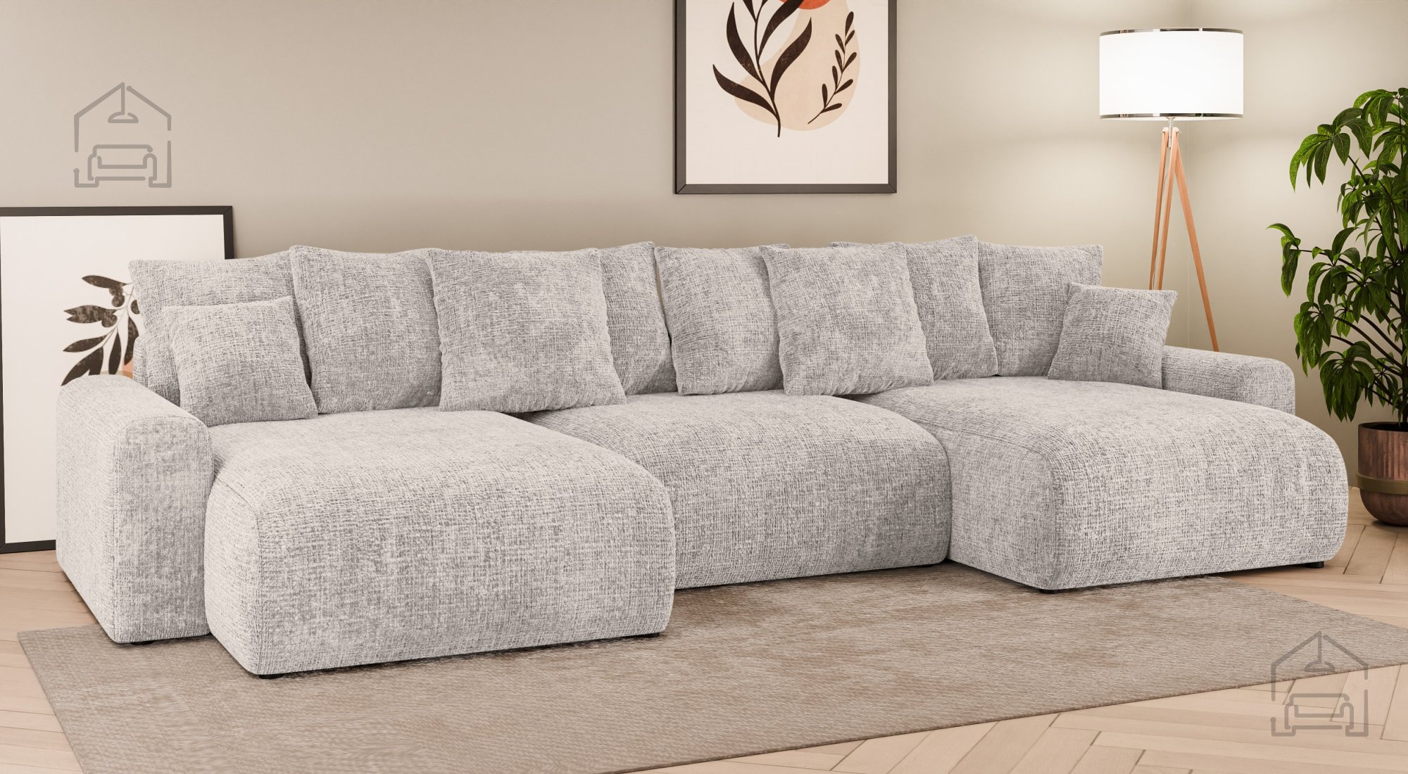 In modernen Haushalten ist die Sitzgarnitur mehr als nur ein Möbelstück – sie ist zum zentralen Element des Wohnzimmers geworden, wo sich Komfort und Stil vereinen. Wenn Sie eine geräumige, funktionale und optisch vollendete Lösung suchen, die den Bedürfnissen der ganzen Familie entspricht, ist diese Wohnlandschaft in U-Form die perfekte Wahl. Sie vereint klare Linien modernen Designs, hochwertige Materialien und durchdachte Funktionen, die Komfort bei täglicher Nutzung gewährleisten.