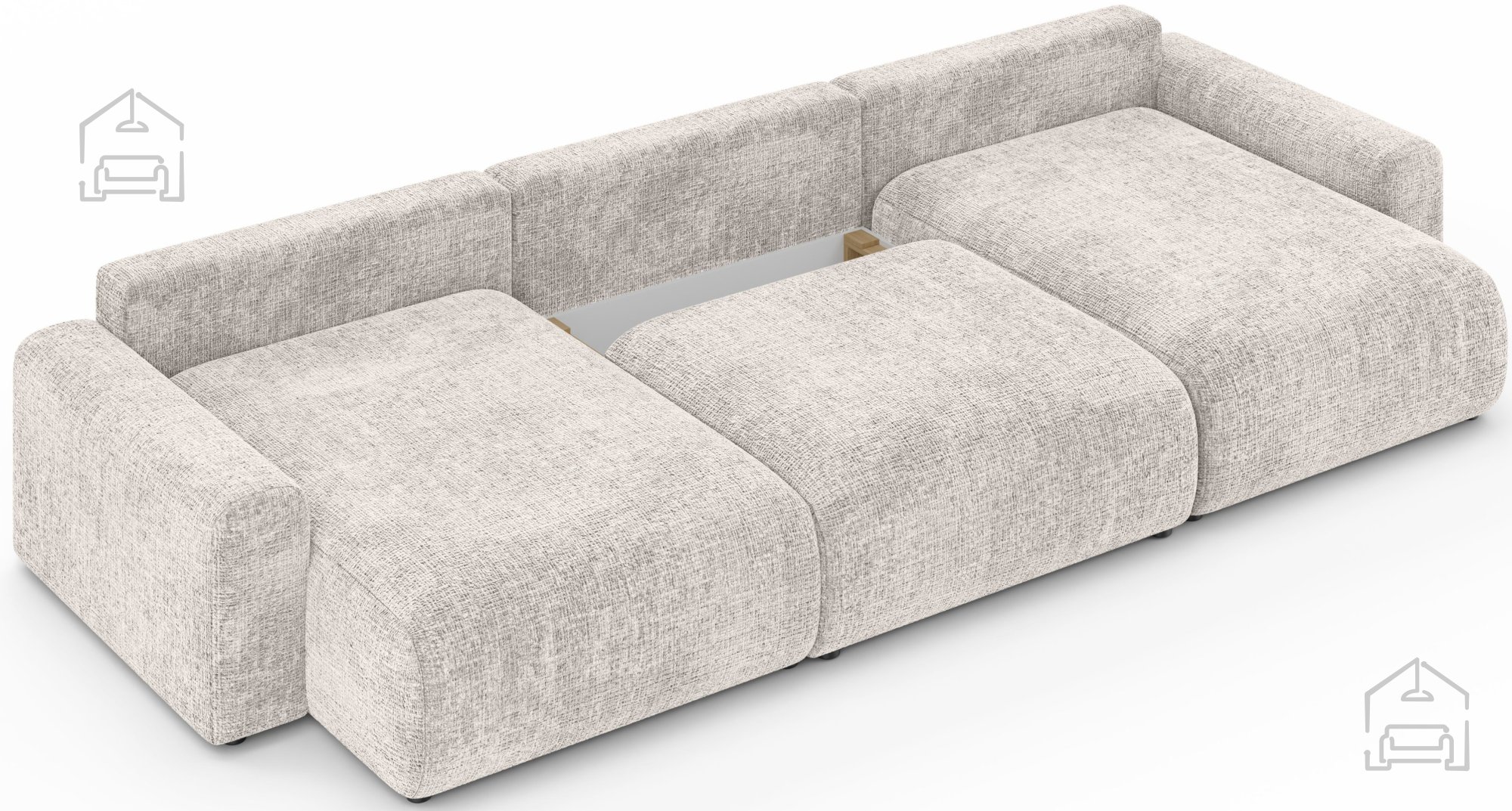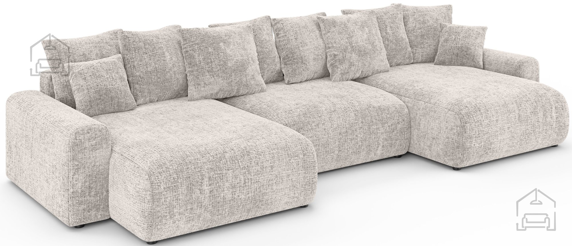 Diese Sitzgarnitur wurde mit Blick auf die Bedürfnisse moderner Familien in Deutschland entworfen. Sie bietet eine Kombination aus Funktionalität, Komfort und elegantem Aussehen, das jedes Wohnzimmer bereichern wird. Aufgrund ihrer Größe und U-Form ist sie ideal für großzügige Räume, wo sie als zentrales Möbelstück zur Geltung kommt.