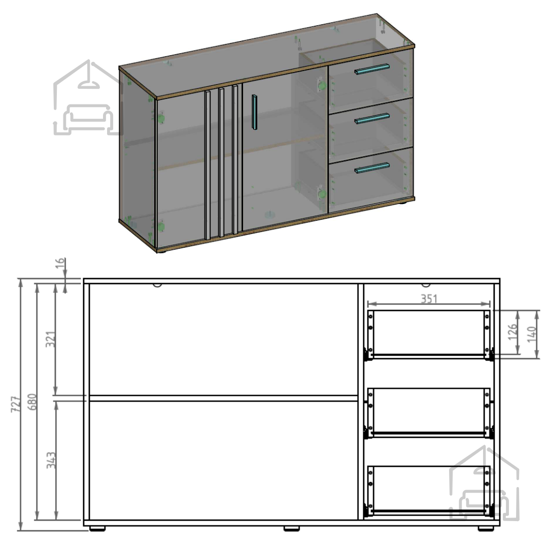 Die perfekte Kombination aus Funktionalität, modernem Design und hochwertiger Verarbeitung – das ist ein Möbelstück, das Ordnung, Eleganz und Wärme in Ihr Zuhause bringt. Mit seiner universellen weißen Farbe und den kontrastreichen Holzleisten im Farbton Eiche Artisan ist es eine ausgezeichnete Wahl für jeden Raum, in dem Sie Praktikabilität und ästhetische Vollkommenheit vereinen möchten. Dank der durchdachten Abmessungen 120x35x73 cm passt es problemlos sowohl ins Wohnzimmer, Schlafzimmer, den Flur als auch ins moderne Büro.