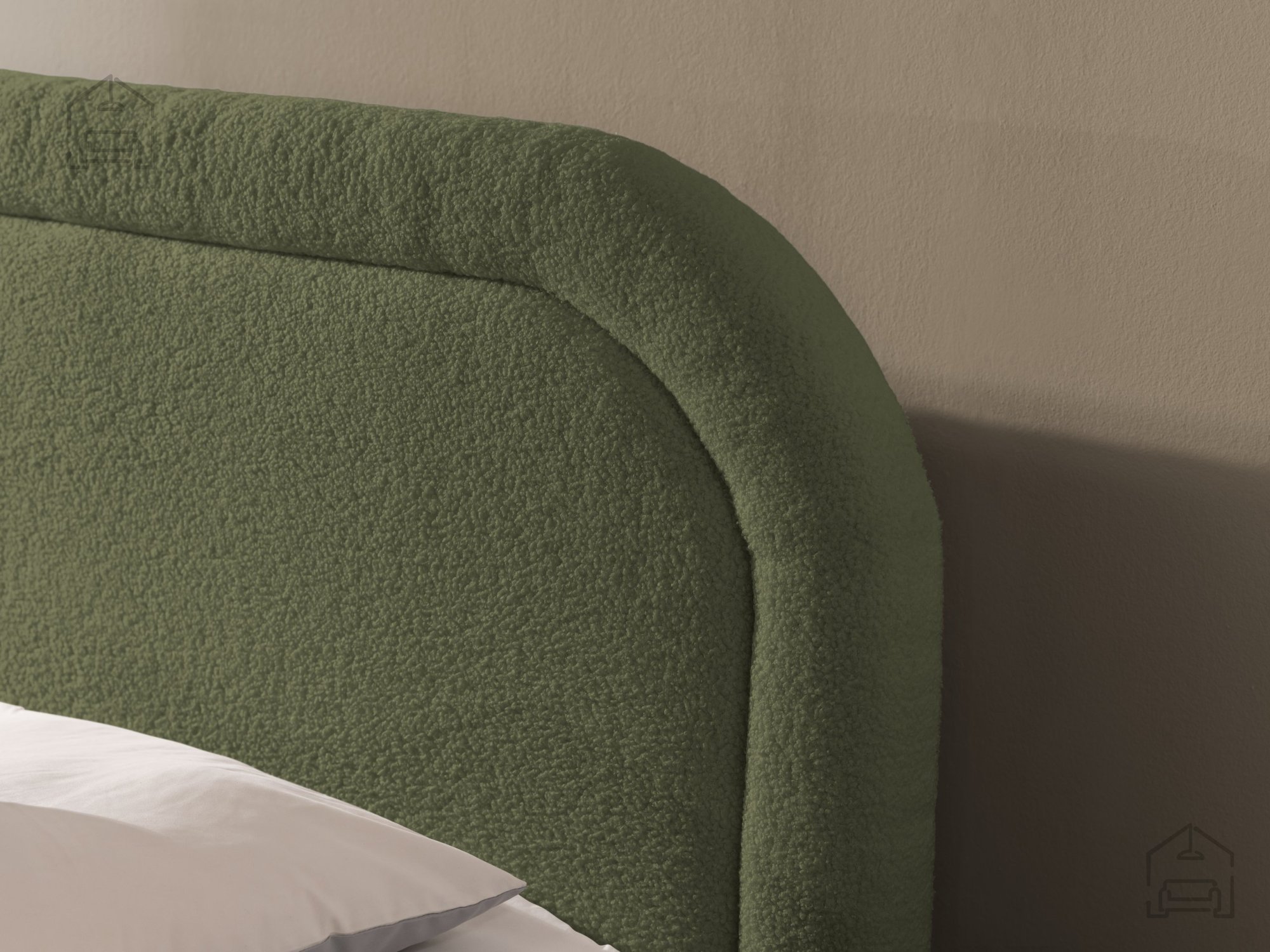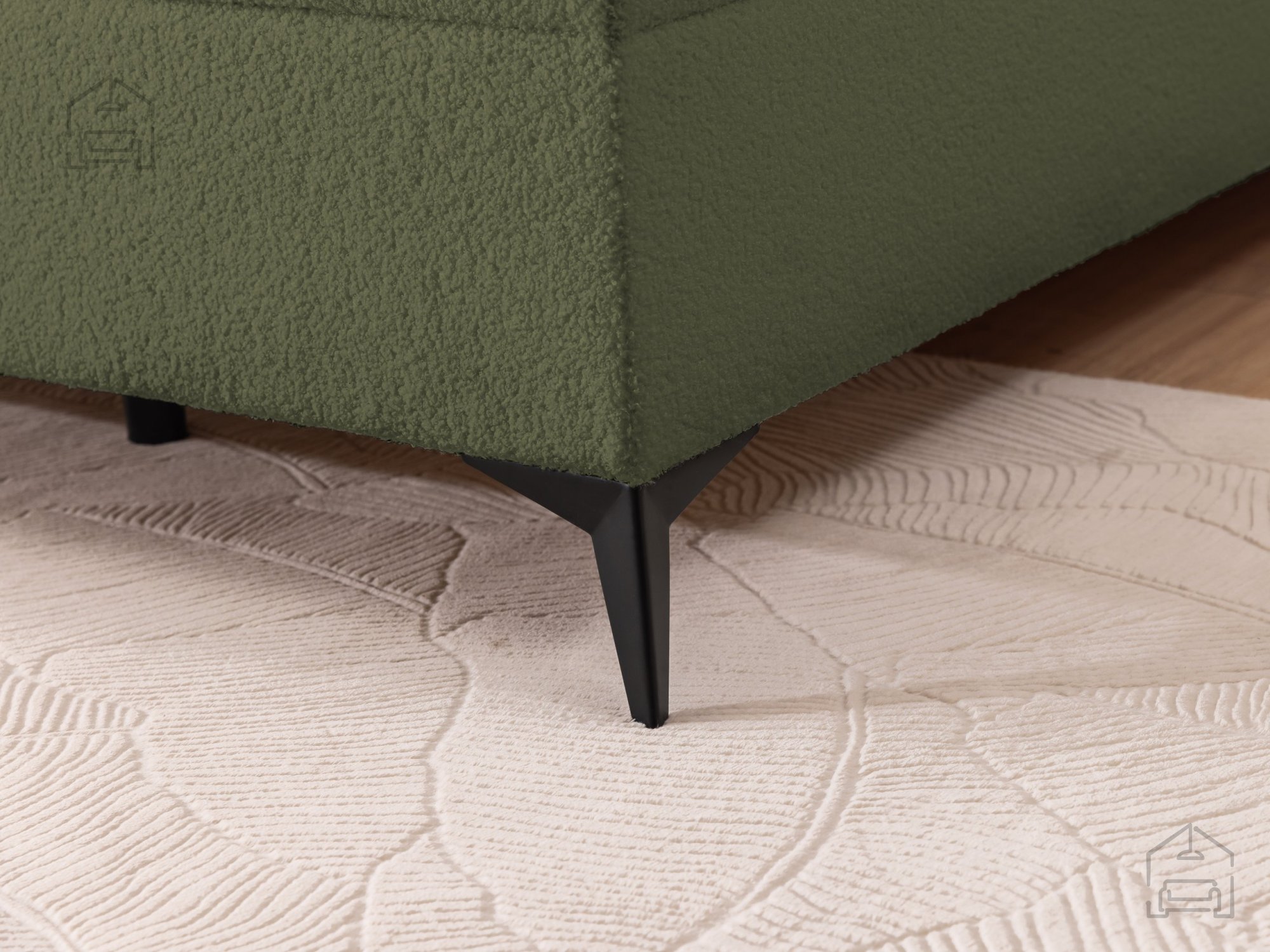 Der gepolsterte Rahmen, den Sie in verschiedenen Farben und Stoffarten wählen können, ermöglicht eine perfekte Anpassung an Ihren Einrichtungsstil. Der Stoff Quelle 37, der auf dem Bild gezeigt wird, verleiht dem Raum einen besonderen Hauch von Luxus, während glänzende schwarze Beine einen eleganten Kontrast schaffen und für ein prestigeträchtiges Aussehen sorgen. Das minimalistische, aber dennoch raffinierte Design ermöglicht es, dass das Bett Ornes sowohl in moderne als auch in klassische Schlafzimmer perfekt passt. Dank hochwertiger Materialien – von Massivholz bis hin zu MDF- und HDF-Platten – ist das Bett stabil, langlebig und für eine langfristige Nutzung konzipiert.