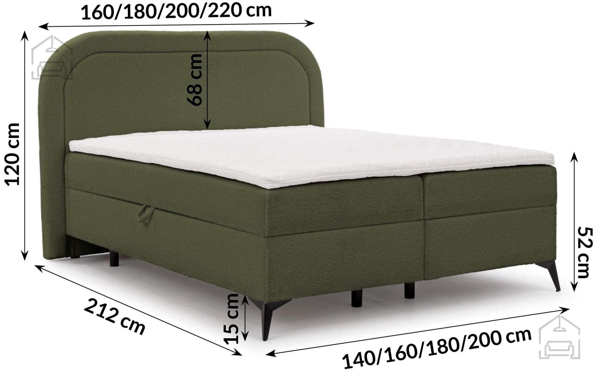 Einer der größten Vorteile dieses Bettes ist seine Boxspring-Konstruktion, die mehrere Schichten von Federn und Schaumstoff kombiniert, um die richtige Unterstützung der Wirbelsäule und höchsten Komfort während der ganzen Nacht zu gewährleisten. Die Matratze ist so konzipiert, dass sie sich vollständig dem Körper anpasst, den Druck auf die Gelenke verringert und einen tiefen, regenerativen Schlaf ermöglicht. Neben dem Komfort begeistert auch die Praktikabilität. Das Bett ist mit einem Hebemechanismus und einem geräumigen Bettkasten für die Aufbewahrung von Bettwäsche ausgestattet, was bedeutet, dass Sie immer Ordnung und zusätzliche Stauraumfläche haben. Dies ist besonders praktisch für kleinere Wohnungen oder für alle, die jeden Zentimeter ihres Schlafzimmers optimal nutzen möchten.