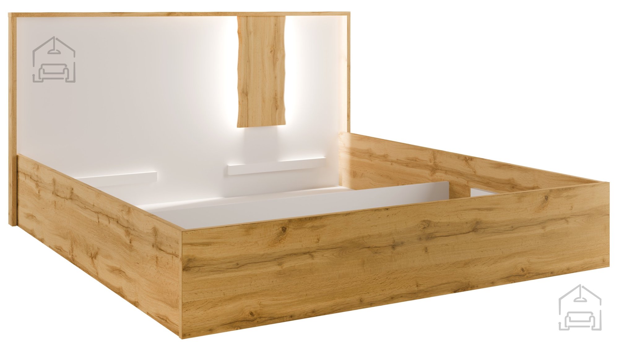 Wenn Sie nach einer modernen, funktionalen und ästhetisch anspruchsvollen Lösung für Ihr Schlafzimmer suchen, ist dieses Bett eine ausgezeichnete Wahl. Es vereint minimalistisches Design, natürliche Holzoptik und praktische Eigenschaften, die Ihrem Schlafzimmer Wärme und Komfort verleihen. Mit seiner Größe von 180x200 cm bietet es ausreichend Platz für ruhigen Schlaf und erholsame Nächte, während es gleichzeitig ein elegantes Erscheinungsbild bewahrt, das sowohl in klassische als auch moderne Interieurs passt.