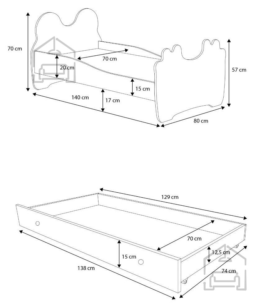 Das Kinderzimmer ist ein Ort, an dem Fantasie und Erholung aufeinandertreffen – daher ist die Wahl des richtigen Bettes besonders wichtig. Dieses elegante und praktische Kinderbett mit einem entzückenden Bärenmotiv ist nicht nur ein hübscher Blickfang, sondern bietet auch eine sichere und gemütliche Schlafumgebung. Mit den Maßen 78x144x58 cm passt es ideal in verschieden große Kinderzimmer, und die Liegefläche von 70x140 cm ist perfekt für die Zeit, in der das Kind aus dem Gitterbett herauswächst und ein größeres Bett braucht.