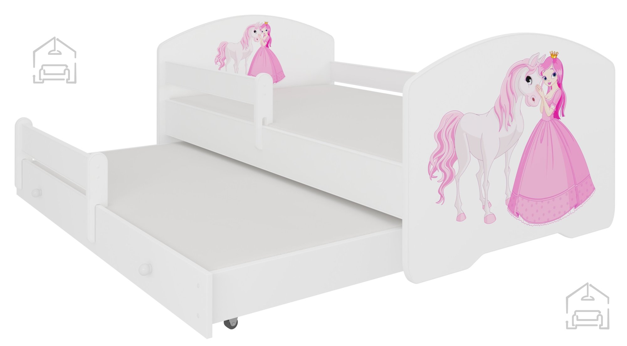 Schaffen Sie eine zauberhafte und sichere Schlafumgebung für Ihr Kind mit dem entzückenden Kinderbett Pepe II Prinzessin und Pferd. Dieses besondere Bett vereint Funktionalität, Sicherheit und ein verspieltes Design, das jedes Mädchen begeistern wird. Mit seinem märchenhaften Motiv von Prinzessin und Pferd bringt es neuen Glanz ins Kinderzimmer und schafft einen Ort, an dem sich Fantasie und Gemütlichkeit treffen.