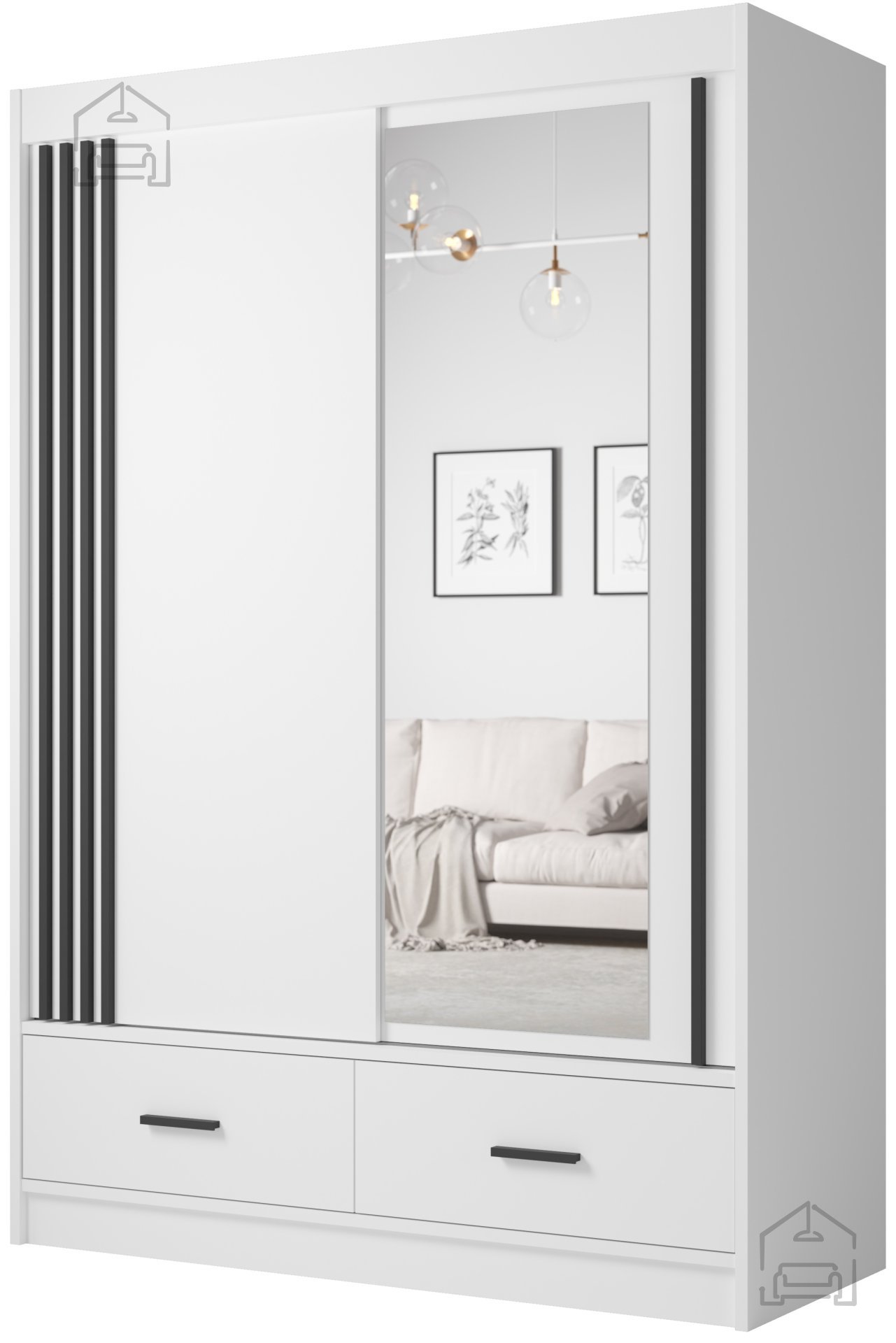 Eine elegante und praktische Lösung für jedes Zuhause, in dem Ordnung an erster Stelle steht, bietet dieser Kleiderschrank mit Schiebetüren. Er vereint modernes Design und Funktionalität in einem Möbelstück. Mit seinen Maßen von 150x60x215 cm bietet er reichlich Platz für Kleidung, Schuhe und Accessoires. Dank der klaren, schlichten Form fügt er sich harmonisch in verschiedene Einrichtungsstile ein. Die weiße Farbe sorgt für Frische und ein Gefühl von Weite – ideal sowohl für kleinere Wohnungen als auch für großzügige Schlafzimmer.