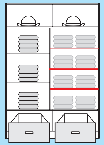 Das Set aus drei Böden ist ideal für alle, die die Funktionalität ihres Schranks verbessern möchten. Ob im Schlafzimmer, Vorraum oder Ankleidezimmer – die zusätzlichen Böden erleichtern das Ordnunghalten und schaffen mehr Übersicht. Besonders praktisch für Familien, in denen sich Kleidung und Textilien schnell vermehren, sowie für alle, die Wert auf ein geordnetes und übersichtliches Umfeld legen.