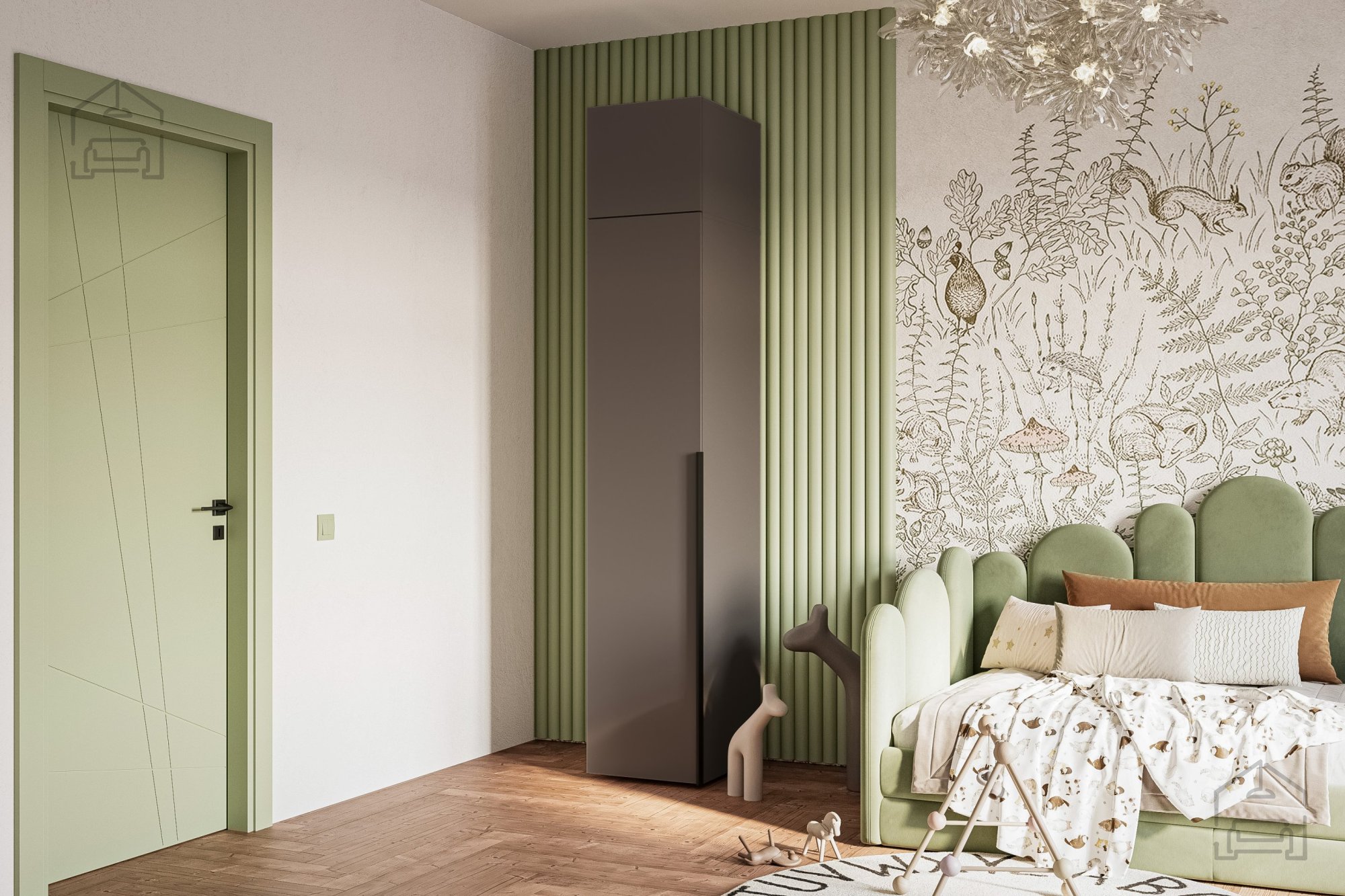 Der Schrank besteht aus einer hochwertigen, 16 mm starken laminierten Platte, die für Langlebigkeit und Widerstandsfähigkeit im Alltag sorgt. Die Oberfläche in dunklem Graphitgrau wirkt modern und zugleich neutral – so lässt sie sich leicht mit anderen Möbelstücken kombinieren. Metallgriffe verleihen dem Schrank einen zeitgemäßen und robusten Charakter, während die verdeckt angebrachten, verstellbaren Füße für sicheren Stand auf allen Bodenarten sorgen.