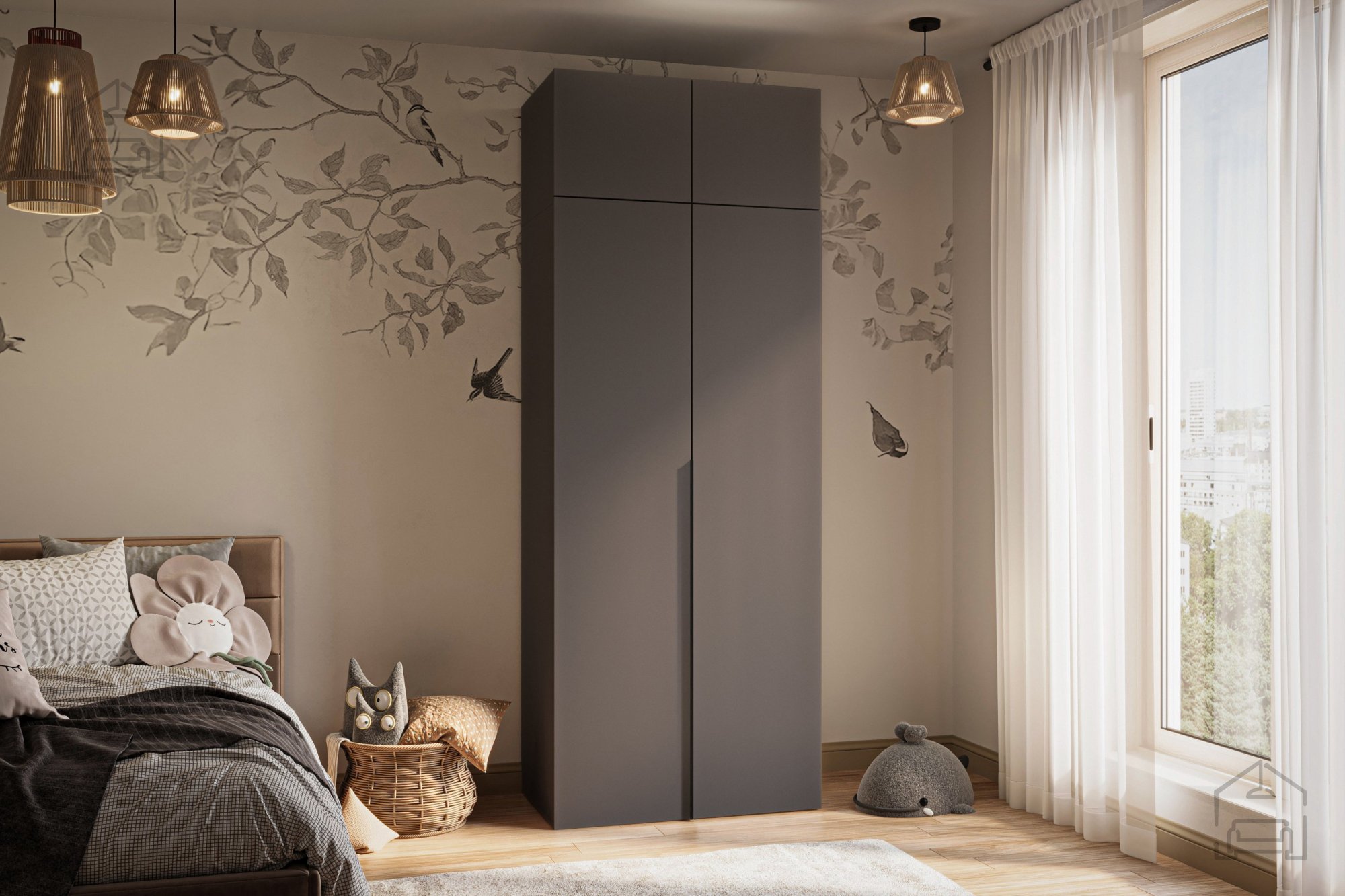 Gefertigt aus einer hochwertigen laminierten Platte mit 16 mm Stärke, überzeugt der Schrank durch Langlebigkeit und Stabilität. Metallgriffe verleihen ihm einen modernen, leicht industriellen Charakter, während verdeckte, verstellbare Füße für sicheren Stand auch auf leicht unebenen Böden sorgen. Dank der durchdachten Konstruktion passt er sowohl in kleinere als auch in größere Räume und fügt sich dezent in die Umgebung ein.
