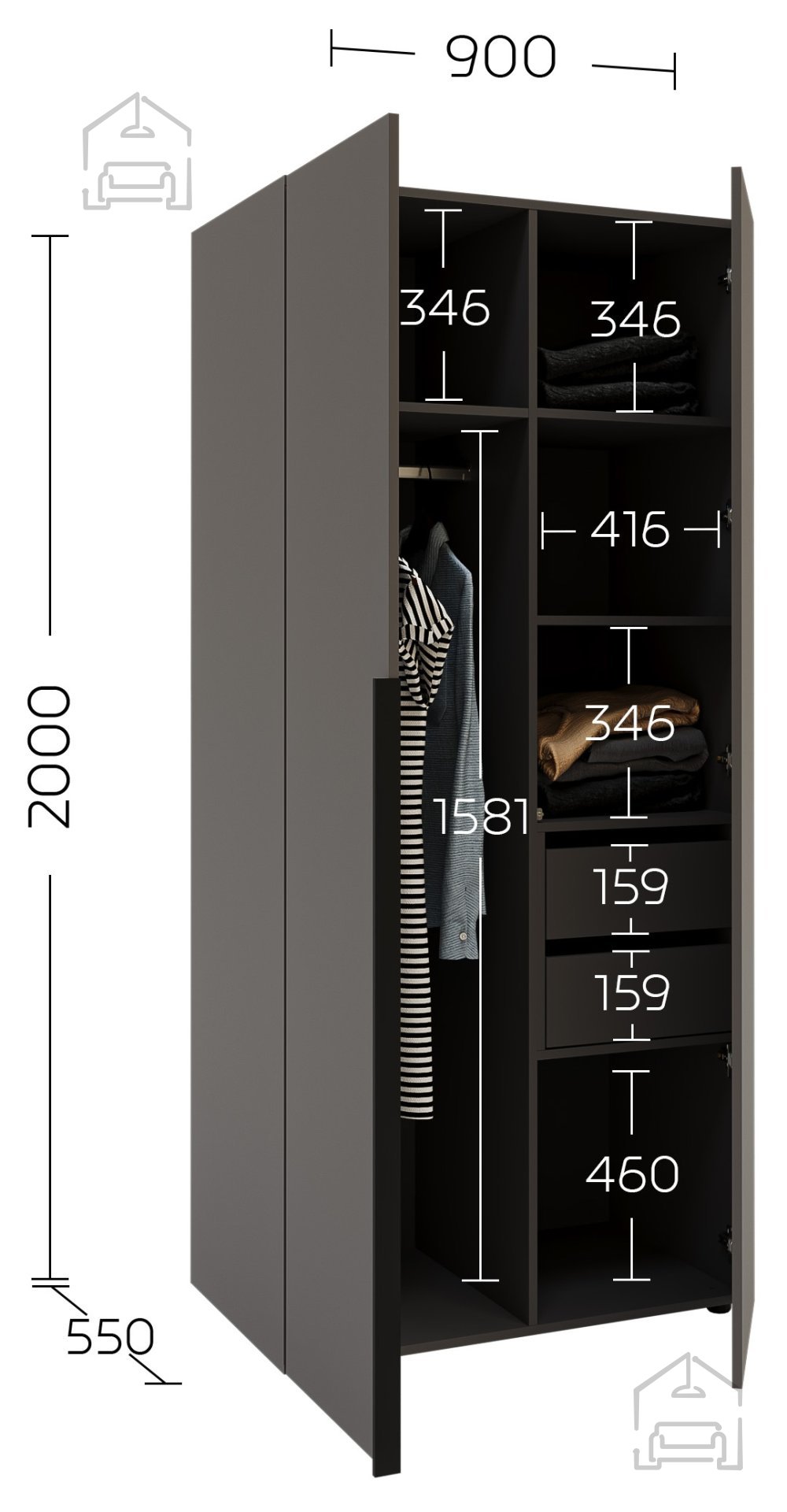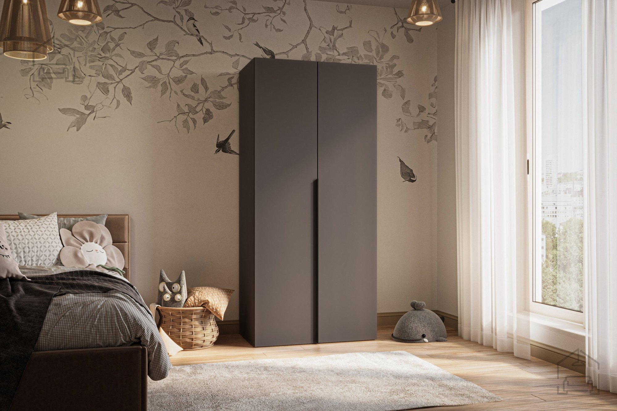Gestalten Sie Ihr Zuhause ordentlich, funktional und stilvoll – wählen Sie den zweitürigen Kleiderschrank in Graphitgrau und genießen Sie ein Ambiente, das Ihren persönlichen Stil widerspiegelt.