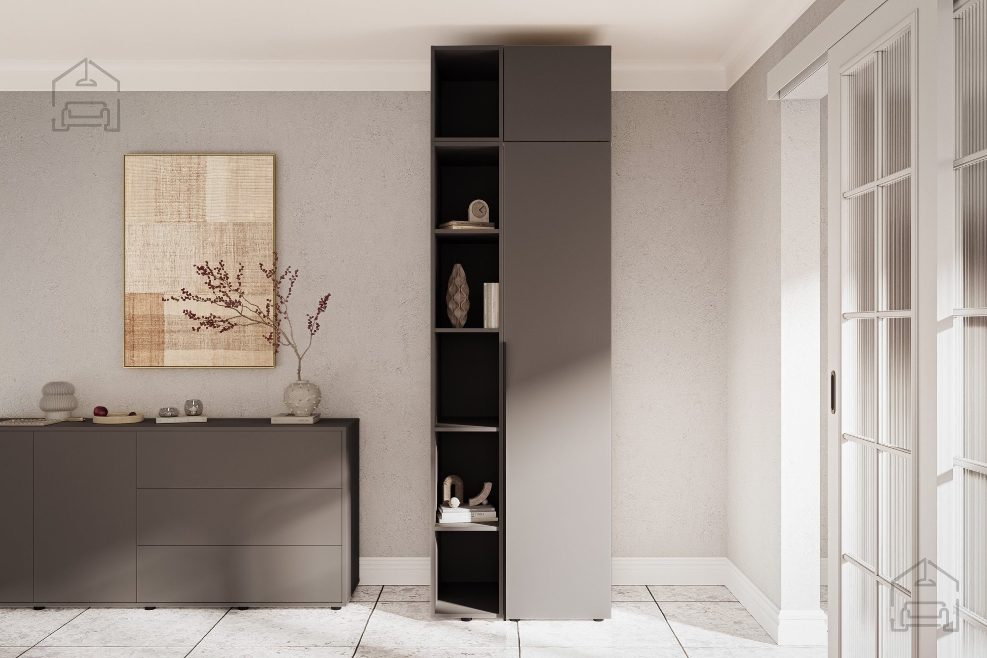 Die perfekte Lösung für alle, die sich mehr Stauraum wünschen und zugleich Wert auf ein stilvolles Einrichtungselement legen, ist das obere Regalbrett Solo in elegantem Graphitgrau. Mit seinem modernen Look und der durchdachten Gestaltung fügt es sich mühelos in verschiedenste Einrichtungsstile ein – von minimalistisch bis klassisch. Dank der kompakten Maße von 30x53x40 cm passt das Regalbrett auch ideal in kleinere Räume, wo jeder Zentimeter zählt.