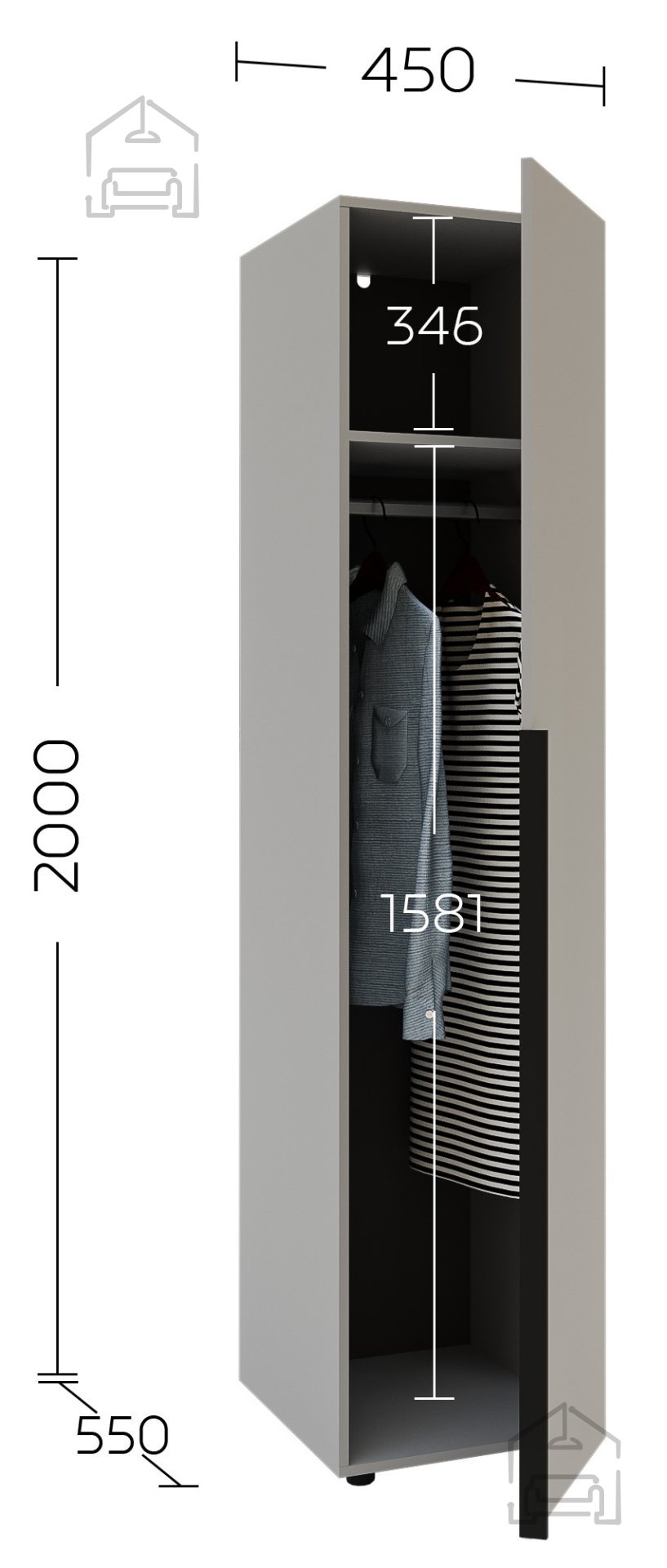Suchen Sie nach einer praktischen Aufbewahrungslösung, die Eleganz, Funktionalität und Qualität vereint? Dieser einflügelige Kleiderschrank in modernem Grauton ist eine hervorragende Wahl für jedes Zuhause. Er verbindet minimalistisches Design mit durchdachten Details, die sich ganz nach Ihren Bedürfnissen richten. Dank seiner kompakten Maße von 45x55x200 cm passt er auch problemlos in kleinere Räume und bietet dennoch ausreichend Platz für Kleidung und Accessoires.
