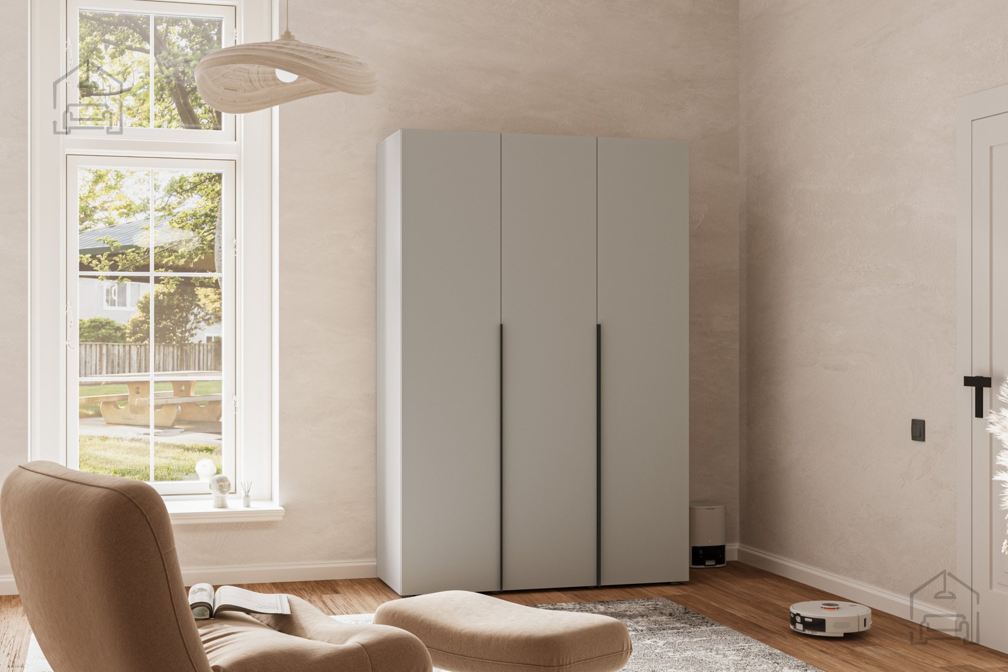 Dieser dreitürige Kleiderschrank ist die ideale Lösung für alle, die Ordnung, Minimalismus und modernes Design schätzen. Dank seiner neutralen Farbgestaltung lässt er sich problemlos in verschiedenste Räume integrieren – im Schlafzimmer dient er als Hauptaufbewahrungsort für Kleidung, im Vorraum als elegante Lösung für Mäntel, Schuhe und Accessoires. Neben seiner ansprechenden Optik überzeugt er auch durch praktische Vorteile – mehr Platz, bessere Organisation und weniger Stress beim täglichen Ankleiden. Seine robuste Bauweise macht ihn widerstandsfähig im Alltag und garantiert, dass er seinen makellosen Look behält.