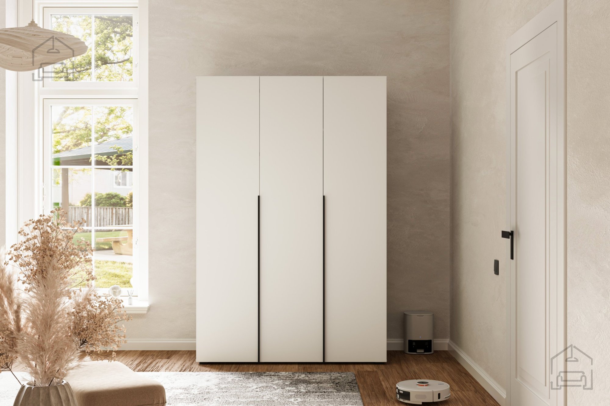 Egal, ob Sie Ihr Schlafzimmer, Jugendzimmer oder Vorzimmer einrichten – dieser dreitürige Kleiderschrank fügt sich mit seiner Vielseitigkeit und seinem klaren, zeitlosen Design harmonisch in jedes Interieur ein. Mit seinen geraden Linien und der dezenten Optik ist er ein Möbelstück, das nie aus der Mode kommt. Machen Sie Ihr Zuhause zu einem Ort, an dem sich Funktion und Eleganz treffen. Mit diesem Schrank gewinnen Sie nicht nur Stauraum, sondern auch ein geordnetes, harmonisches und angenehmes Wohngefühl, das Sie Tag für Tag genießen werden.