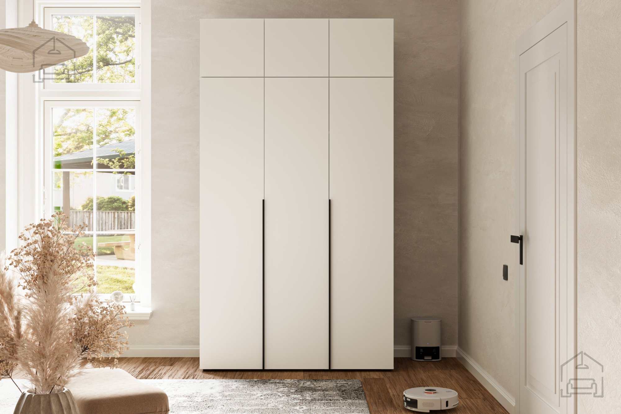 Wenn Sie das perfekte Gleichgewicht zwischen modernem Design, Funktionalität und Qualität suchen, ist dieser dreitürige Kleiderschrank eine hervorragende Wahl für Ihr Zuhause. Mit seiner klaren, hellen Farbe Nimfea Alba verleiht er Ihrem Raum ein Gefühl von Leichtigkeit, Ordnung und Eleganz. Dank seiner kompakten Maße von 132x55x200 cm passt er problemlos auch in kleinere Schlafzimmer oder Vorzimmer und bietet dennoch überraschend viel Stauraum für Kleidung, Bettwäsche und persönliche Gegenstände. Der Schrank besteht aus einer 16 mm starken laminierten Platte, die Langlebigkeit, Kratzfestigkeit und einfache Pflege garantiert – ein Material, das Ästhetik und Alltagstauglichkeit ideal vereint.