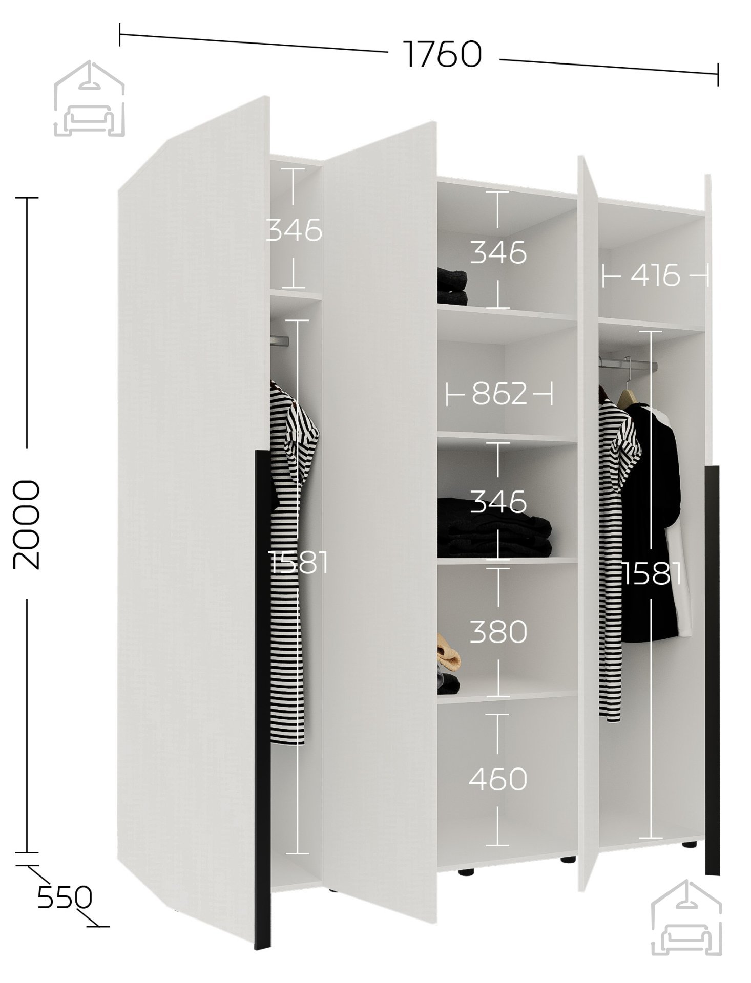 In modernen Wohnungen, wo Funktionalität und Ästhetik Hand in Hand gehen, zählt der Kleiderschrank zu den wichtigsten Möbelstücken. Er sollte praktisch, hochwertig und zeitlos gestaltet sein. Der viertürige Kleiderschrank Solo 4D Sh – Nimfea Alba ist die perfekte Wahl für alle, die Wert auf ein elegantes Erscheinungsbild, eine durchdachte Innenaufteilung und lange Haltbarkeit legen. Mit den Maßen 176x55x200 cm bietet er großzügigen Stauraum für Kleidung, Bettwäsche und Accessoires und fügt sich dank seiner hellen Farbgebung harmonisch in jedes Wohnkonzept ein.