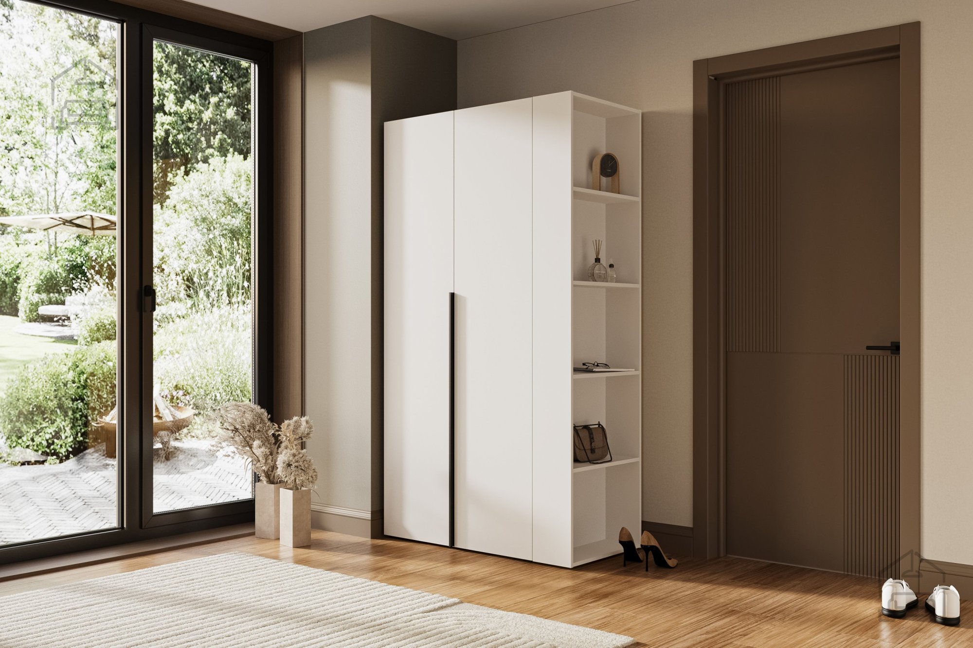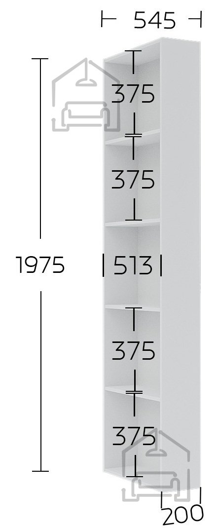 Das Regal wurde mit Blick auf praktische Nutzung und lange Haltbarkeit entworfen. Mit den Maßen 55x20x198 cm nutzt es den vorhandenen Platz optimal aus – schmal genug für enge Nischen, aber dennoch hoch und geräumig genug für Bücher, Dekorationen, Unterlagen oder persönliche Gegenstände. Jede Ablage besteht aus einer hochwertig laminierten Platte mit 16 mm Stärke, die Stabilität und Widerstandsfähigkeit im Alltag gewährleistet.