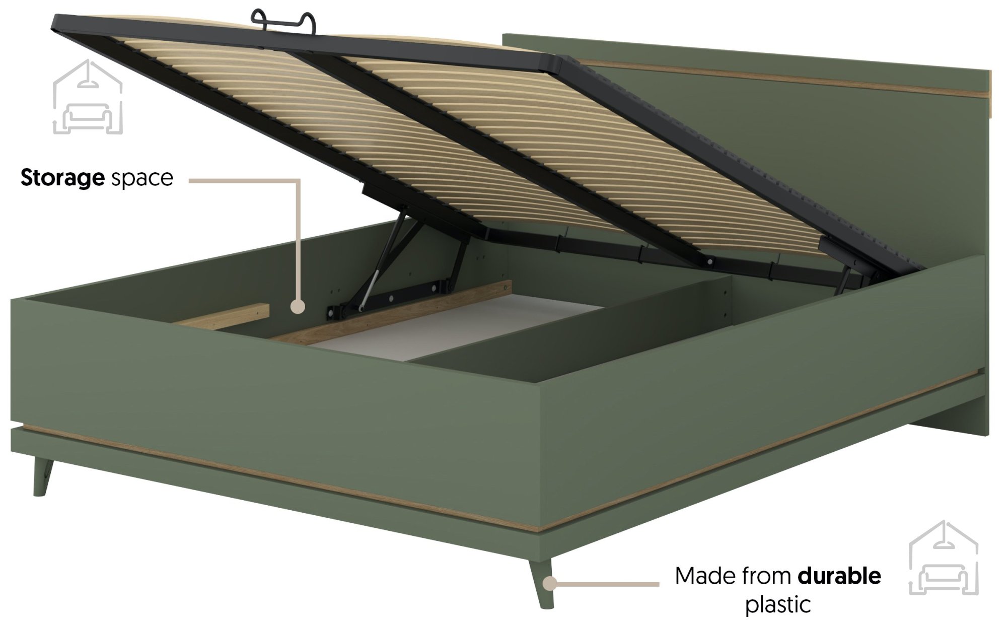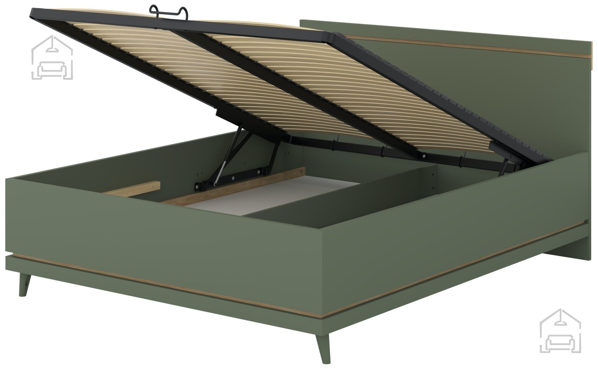Wenn Sie ein Bett suchen, das modernes Design, praktische Eigenschaften und hohen Komfort vereint, ist das Bett Scandi mit Hebemechanismus die richtige Wahl für Ihr Zuhause. Die stilvolle Kombination aus blassgrün geölter Eiche und sanftem Blassgrün bringt Ruhe und natürliche Harmonie in Ihr Schlafzimmer. Dieses Bett überzeugt nicht nur durch sein ansprechendes Design, sondern auch durch seine durchdachte Funktionalität – entwickelt mit Blick auf Komfort, Ästhetik und Alltagstauglichkeit.