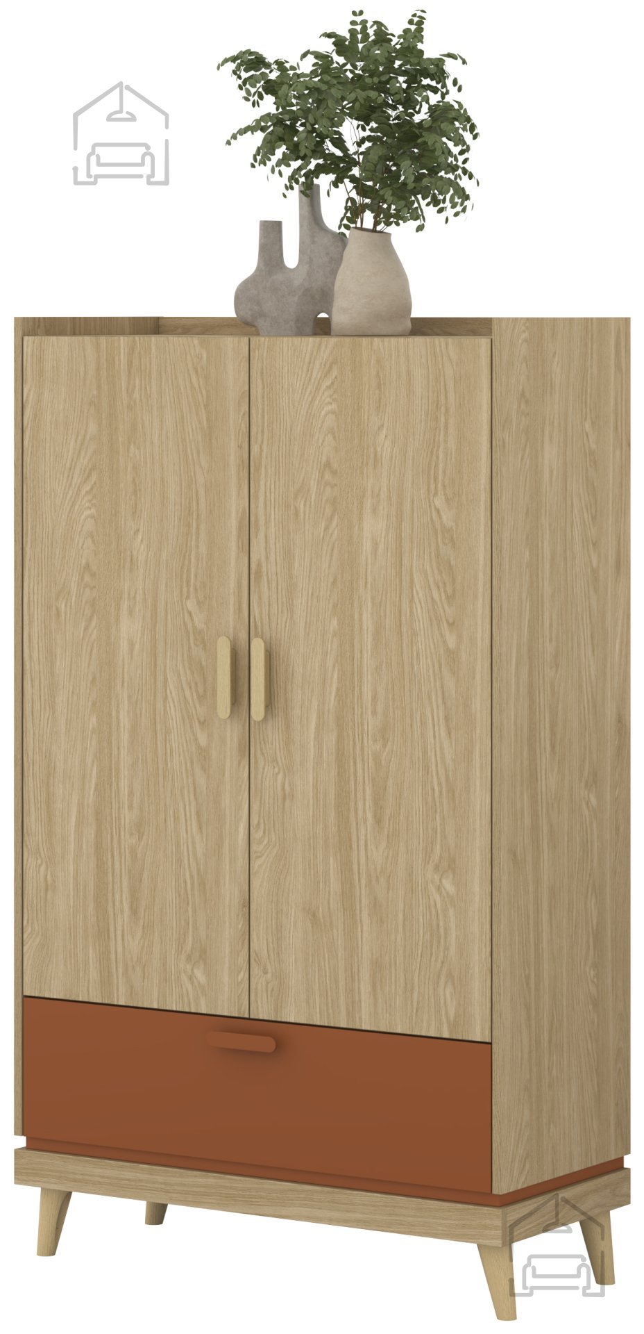 In jedem Zuhause gibt es einen Platz, den man mit dem richtigen Möbelstück in eine Oase der Ordnung, Wärme und zeitlosen Eleganz verwandeln kann. Genau diesen Eindruck vermittelt dieser Schrank, gefertigt aus einer wunderschönen Kombination aus geölter Eiche und Akzenten in Ziegelrot – die perfekte Wahl für alle, die natürliche Farbtöne und hochwertige Verarbeitung schätzen. Mit seinen Maßen von 90x40x150 cm passt er ideal in kleinere wie auch größere Räume und bietet ein ausgewogenes Verhältnis zwischen Stauraum und Kompaktheit.