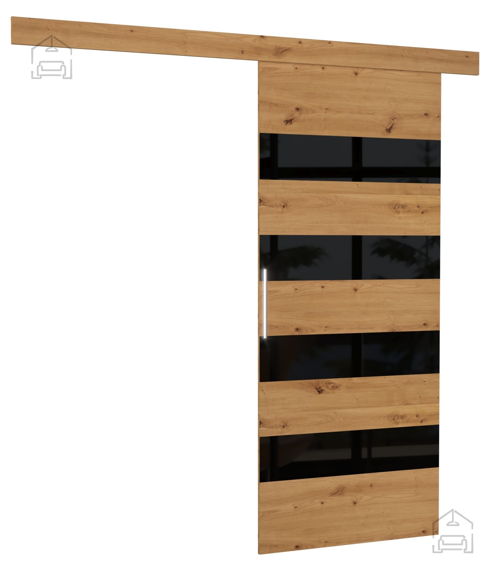 Wenn Sie nach einer stilvollen und platzsparenden Möglichkeit suchen, Ihre Wohnbereiche voneinander zu trennen, sind die Schiebetüren Milou 96 in der Farbkombination Eiche Artisan und Schwarz eine ausgezeichnete Wahl. Mit ihrem modernen Design und den warmen, natürlichen Holztönen schaffen sie in jedem Raum – ob Wohnzimmer, Schlafzimmer oder Büro – eine angenehme und elegante Atmosphäre. Die Türen bestehen aus einer hochwertigen 16 mm starken Spanplatte, die Stabilität, Festigkeit und Langlebigkeit garantiert. Die markante Struktur der Eiche Artisan harmoniert perfekt mit den eleganten schwarzen Akzenten und bildet einen zeitlosen Kontrast zwischen der Wärme des Holzes und dem modernen, industriellen Stil. Jedes Detail ist sorgfältig gestaltet – das Ergebnis ist eine gelungene Verbindung von Funktionalität und Design, die sich mühelos an verschiedene Einrichtungsstile anpasst.