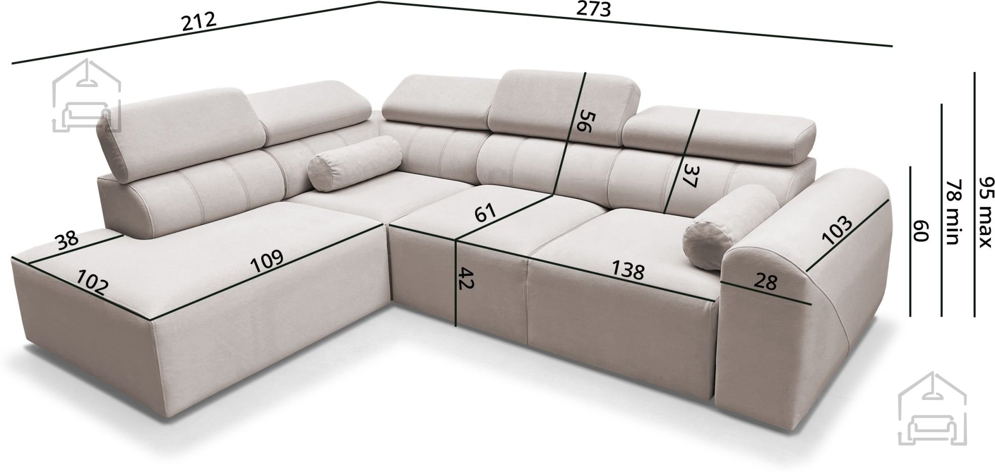 Die Volare I ist so konzipiert, dass sie sich optimal an den Raum anpassen lässt. Bei der Bestellung ist anzugeben, ob Sie die linke oder rechte Eckvariante wünschen – die Seite wird aus der Perspektive einer Person bestimmt, die vor der Couch steht. Diese Flexibilität ermöglicht die bestmögliche Nutzung des vorhandenen Platzes.