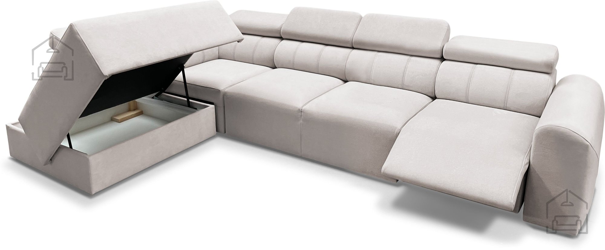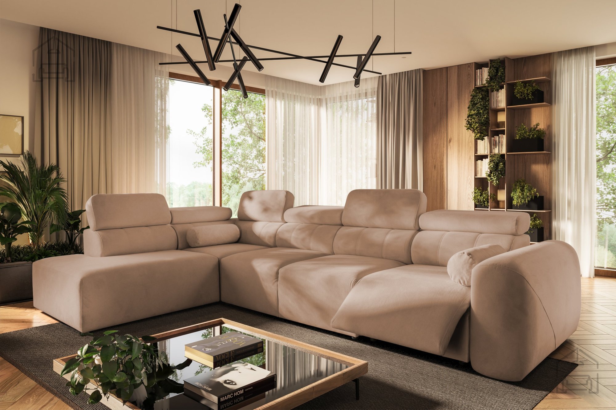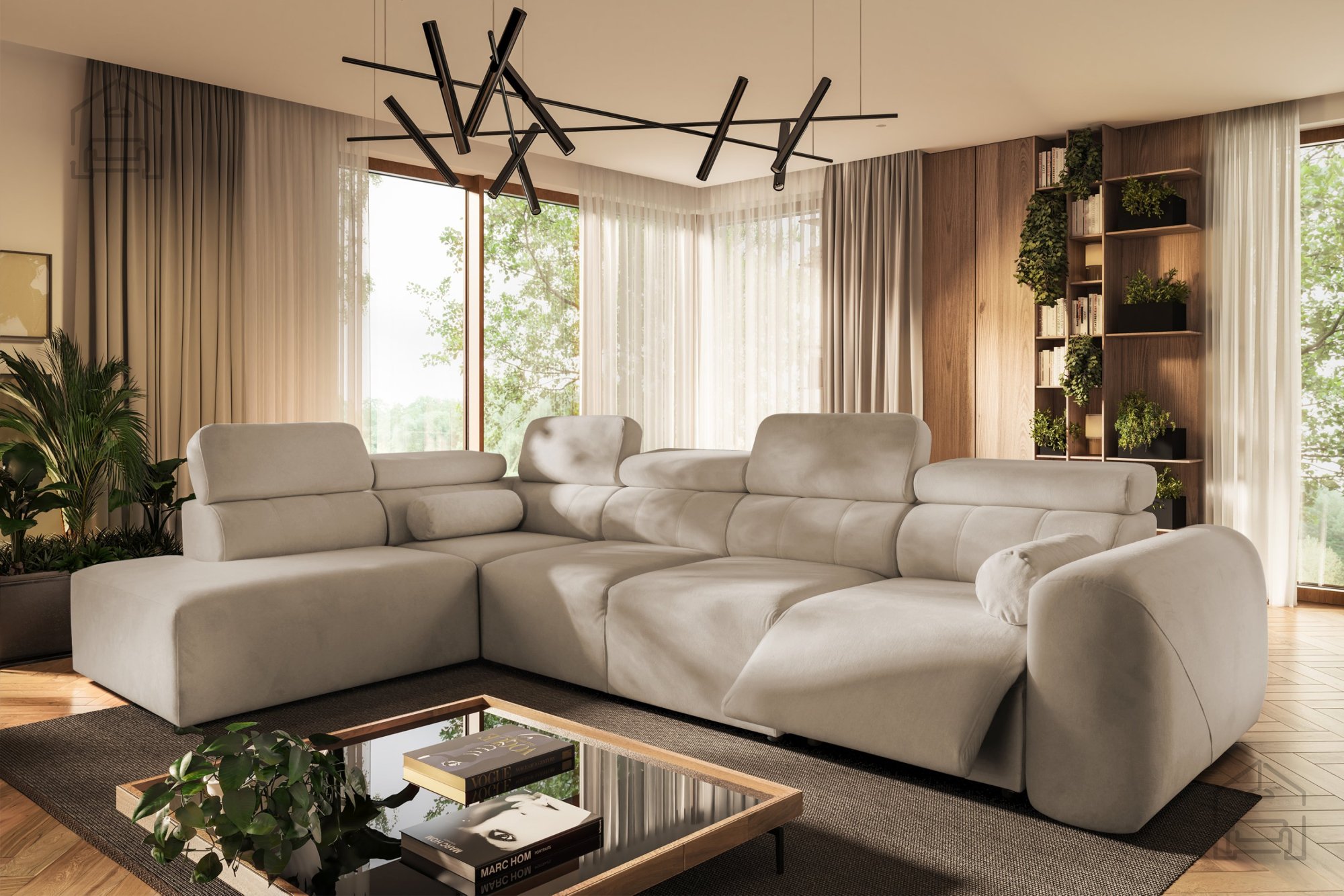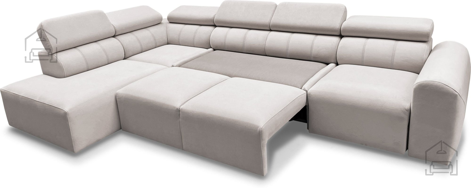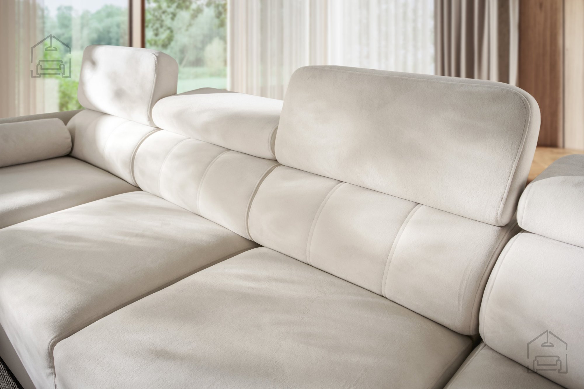 Die Volare XI Mix ist nicht nur optisch ansprechend, sondern überzeugt auch durch durchdachte Details. Ein integrierter Bettkasten bietet zusätzlichen Stauraum für Decken oder Bettwäsche – besonders praktisch in kleineren Wohnungen. Außerdem verfügt die Garnitur über fünf verstellbare Kopfstützen, die individuell anpassbar sind, sowie über eine elektrisch verstellbare Fußstütze für entspannte Momente. Die Schlaffunktion ist mit einem PUMA-Mechanismus ausgestattet, der das Ausziehen und Zusammenklappen besonders leicht macht.