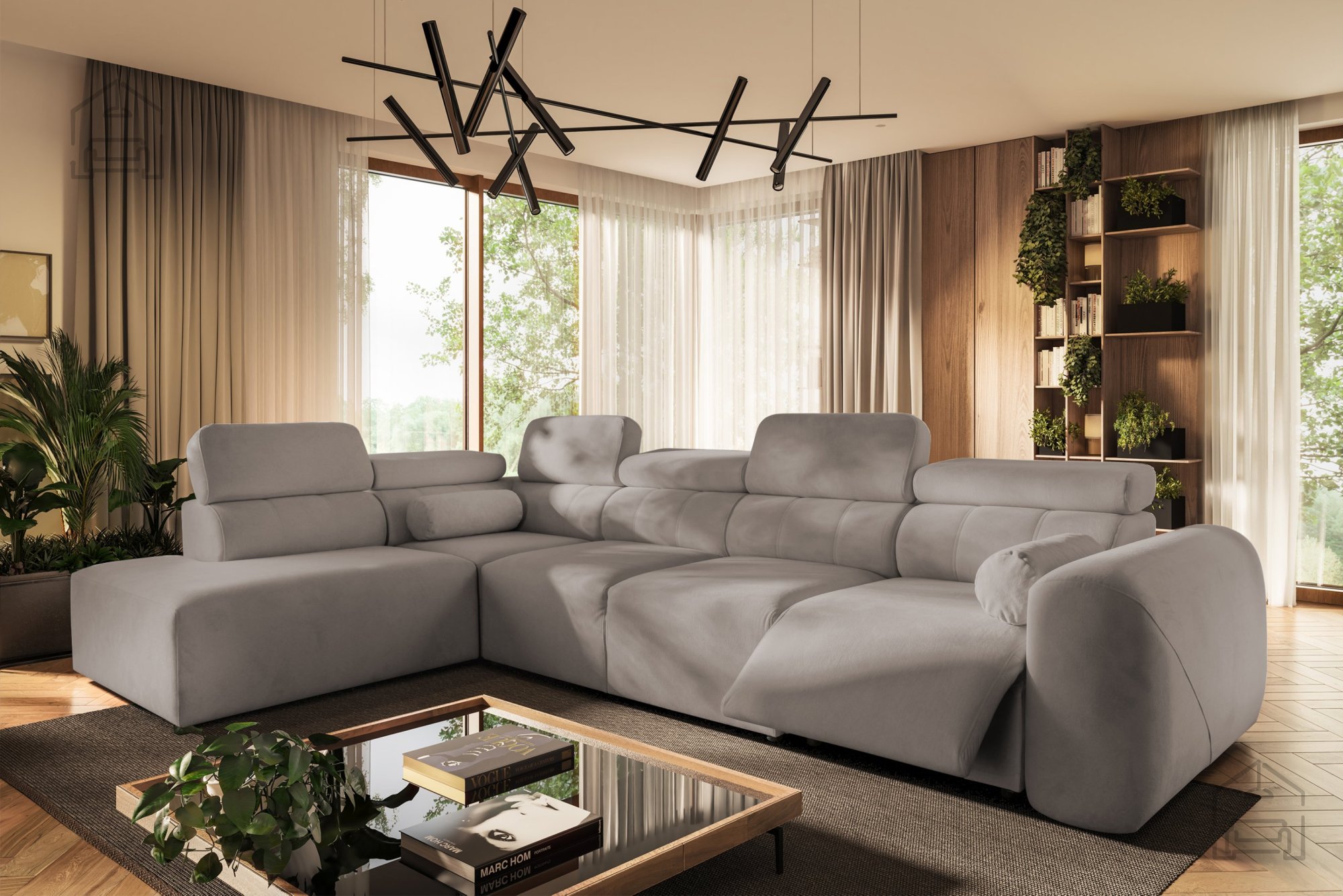 Die Eckgarnitur Volare XI Mix vereint modernes Design, hohen Komfort und praktische Funktionalität – genau das, was man sich von hochwertiger europäischer Möbelherstellung erwartet. Der polnische Hersteller Brattex hat dieses Modell für den täglichen Gebrauch entwickelt, wo Ästhetik und Alltagstauglichkeit perfekt zusammenfinden. Mit ihren großzügigen Maßen von 343x212x95 cm und dem Dolphin-Mechanismus lässt sie sich im Handumdrehen in eine gemütliche Liegefläche von 202x132 cm verwandeln. Der auf dem Foto gezeigte Stoff Torra 41063 gehört zur vierten Stoffgruppe und ist bekannt für seine angenehme Haptik und hohe Strapazierfähigkeit.