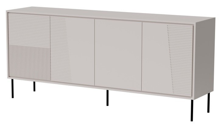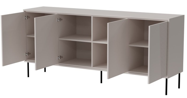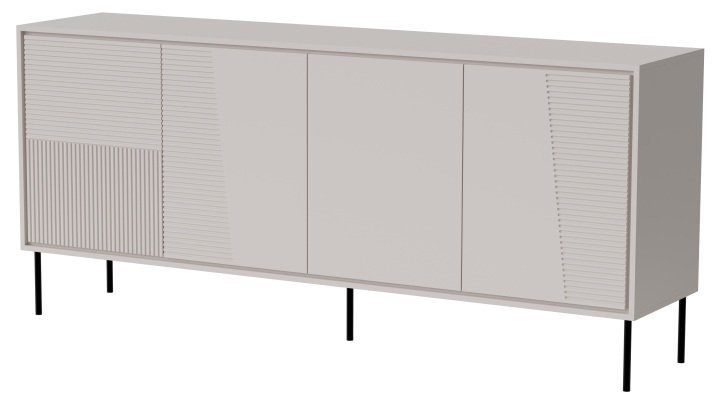 Das Untergestell besteht aus 20 cm hohen schwarzen Metallbeinen. Diese Höhe erleichtert das Reinigen unter der Kommode und verleiht dem Möbelstück zugleich Leichtigkeit und Stabilität. Die Metallbeine sind zusätzlich gegen Korrosion geschützt, was ihre Langlebigkeit erhöht.