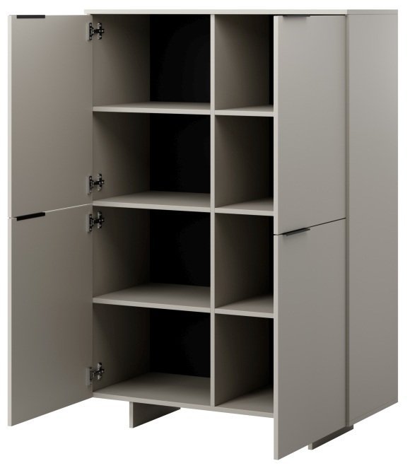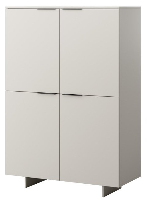 Der Kaschmirfarbton der Kommode Alma 4D vermittelt Ruhe und Wärme. Zusammen mit den mattschwarzen Griffen entsteht ein moderner, zugleich zeitloser Look. Dank ihrer neutralen Farbgebung passt sie zu vielen Farbkonzepten – von zarten Pastelltönen bis hin zu kräftigen Graphitnuancen. Die Kommode kann einzeln stehen oder Teil einer größeren Möbelserie in ähnlichen Farbtönen sein.