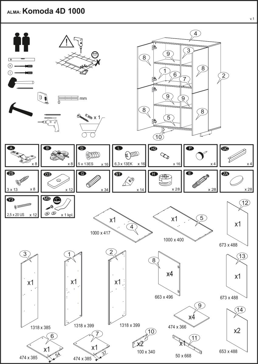 Laminierte Platte 145x41,5x100 cm: Kommode Alma 4D – Halmar.