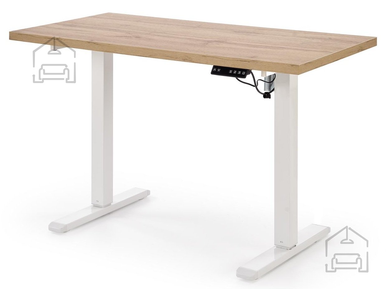 Der Schreibtisch B54 von Halmar ist eine moderne Lösung für alle, die eine ergonomische und zugleich stilvolle Arbeitsfläche suchen. Dank der höhenverstellbaren Konstruktion und der Kombination aus Artisan-Eiche und weißem Metallgestell lässt sich der Tisch sowohl im Sitzen als auch im Stehen bequem nutzen. Gefertigt aus laminierter Platte und robustem pulverbeschichtetem Stahl überzeugt er durch Stabilität, Langlebigkeit und einfache Pflege. Mit seinen kompakten Maßen von 120×60×75–120 cm passt er perfekt in ein Homeoffice, ein Jugendzimmer oder einen modernen Arbeitsplatz.