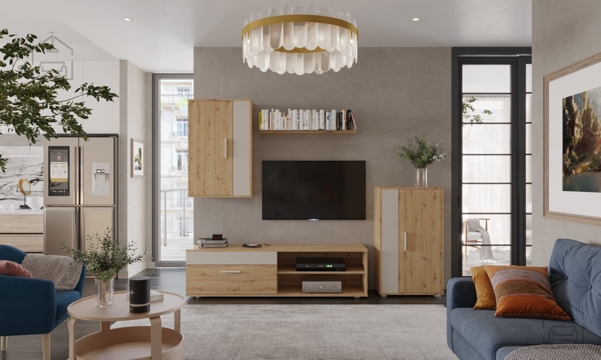 Das TV-Regal Benson – Halmar vereint modernes Design, hochwertige Materialien und durchdachte Funktionalität. Gefertigt aus einer 16 mm starken Möbelplatte mit einem Rahmen aus Spanplatte, bietet es Stabilität und Langlebigkeit. Die Farbkombination aus Artisan-Eiche und Kaschmir sorgt für einen warmen, zugleich eleganten Look, der sich wunderbar in unterschiedliche Einrichtungsstile einfügt – vom skandinavischen Minimalismus bis hin zum modernen urbanen Stil.