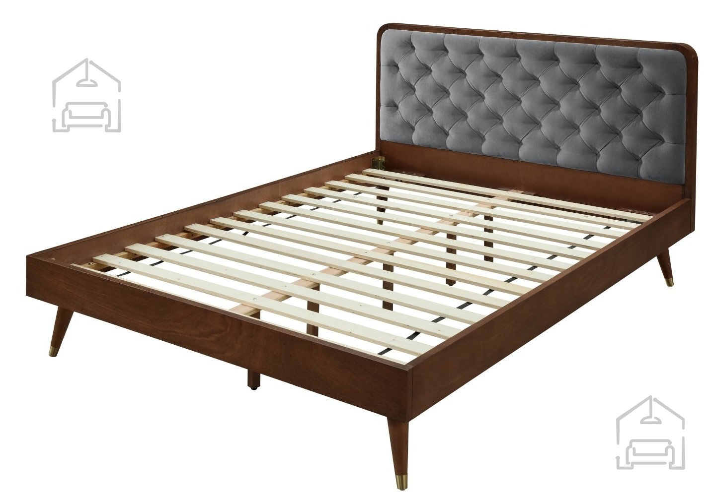Stoff und massives Kautschukholz: Bett Cassidy – Halmar.
