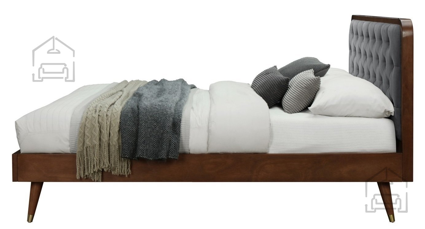 Das Bett Cassidy wurde im Einklang mit aktuellen Einrichtungstrends gestaltet. Der aschgraue Stoff bietet eine weiche, angenehme Oberfläche, die harmonisch mit den Holzelementen in warmen Nussbaum- und Artisan-Eichentönen zusammenspielt. Diese Farbgebung macht das Bett vielseitig kombinierbar – ob in einem minimalistischen, rustikalen oder skandinavischen Stil. Klare Linien und dezente Details schaffen ein Gefühl von Ruhe und Ordnung – perfekt für ein gemütliches Schlafzimmer.