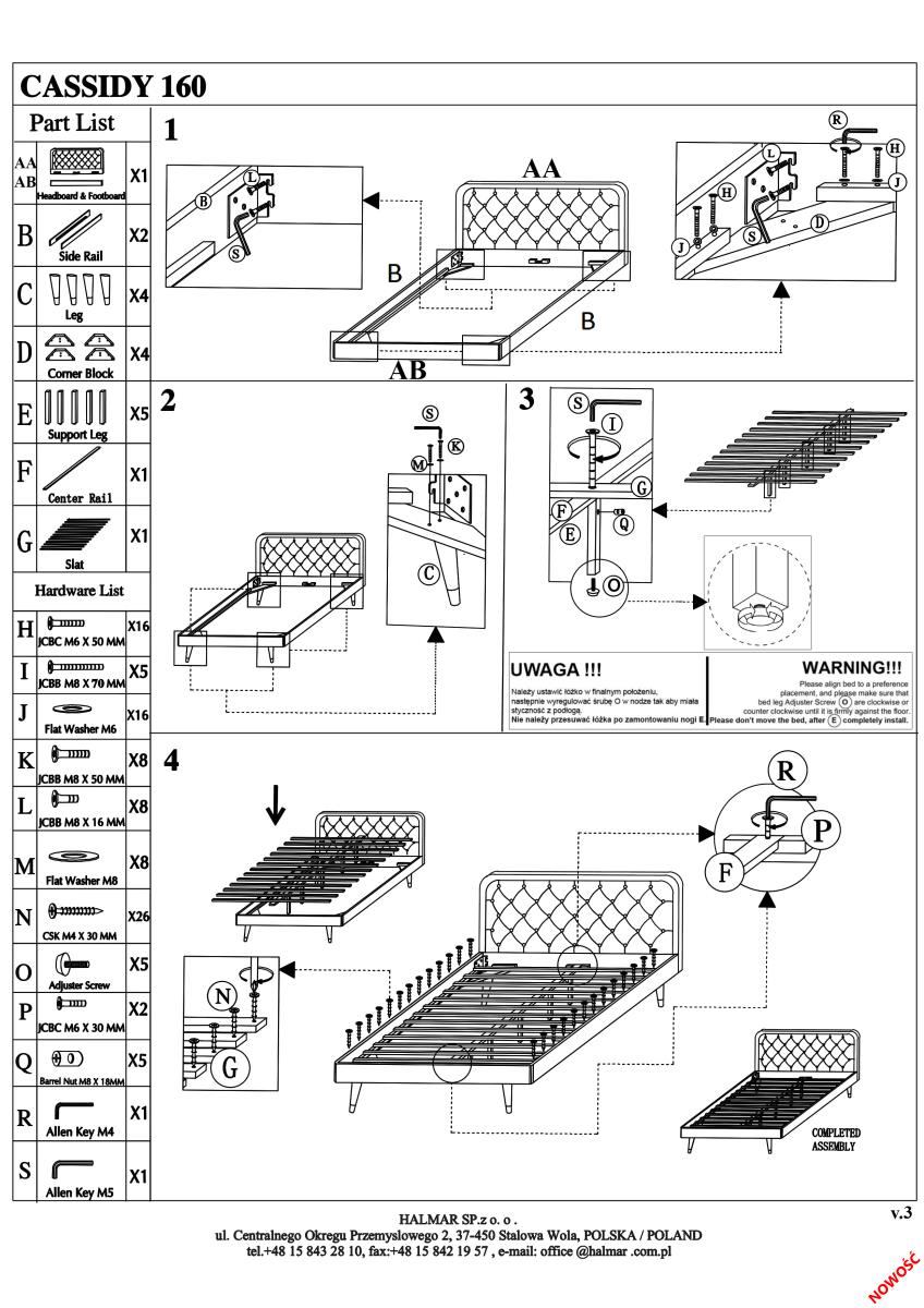 Das moderne Design und die hochwertige Verarbeitung sorgen dafür, dass das Bett Cassidy von Halmar lange Zeit sowohl optisch als auch funktional überzeugt. Eine einfache Montage, die stabile Konstruktion und die sorgfältige Materialauswahl machen dieses Modell zur idealen Wahl für alle, die ein zuverlässiges, stilvolles und bequemes Bett für den täglichen Gebrauch suchen.