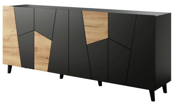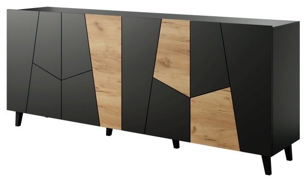 Das schwarze Korpus in Kombination mit dem Craft-Eichendekor schafft einen harmonischen Kontrast, der Wärme und Eleganz ausstrahlt. Diese Farbgestaltung lässt sich leicht mit verschiedensten Einrichtungsstilen kombinieren – ob industriell, skandinavisch oder modern-minimalistisch. Die matte Oberfläche reflektiert kein Licht, wodurch die Kommode auch in hellen Räumen ruhig und edel wirkt.