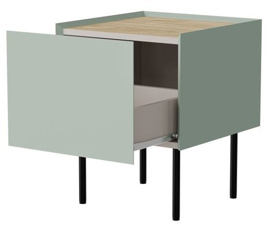 Elegantes Olivgrün und Metallbeine: Nachttisch-Set Fellini – Halmar.