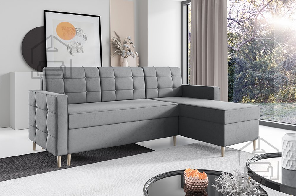 Die Ecksofa-Garnitur Dave 127 der Marke PKMebel vereint Komfort, Funktionalität und modernes Design in perfekter Balance. Mit ihren Maßen von 222 x 141 x 96,5 cm passt sie ideal in Wohnräume unterschiedlicher Größe. Dank der variablen Bauweise lässt sich die Seite der Ottomane ganz einfach von links nach rechts tauschen – je nach Raumaufteilung. Diese Flexibilität macht sie zu einer besonders praktischen Wahl für jedes Zuhause, in dem Ästhetik und Alltagstauglichkeit gleichermaßen zählen.