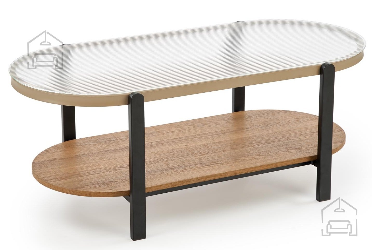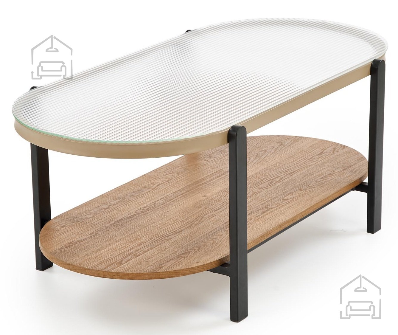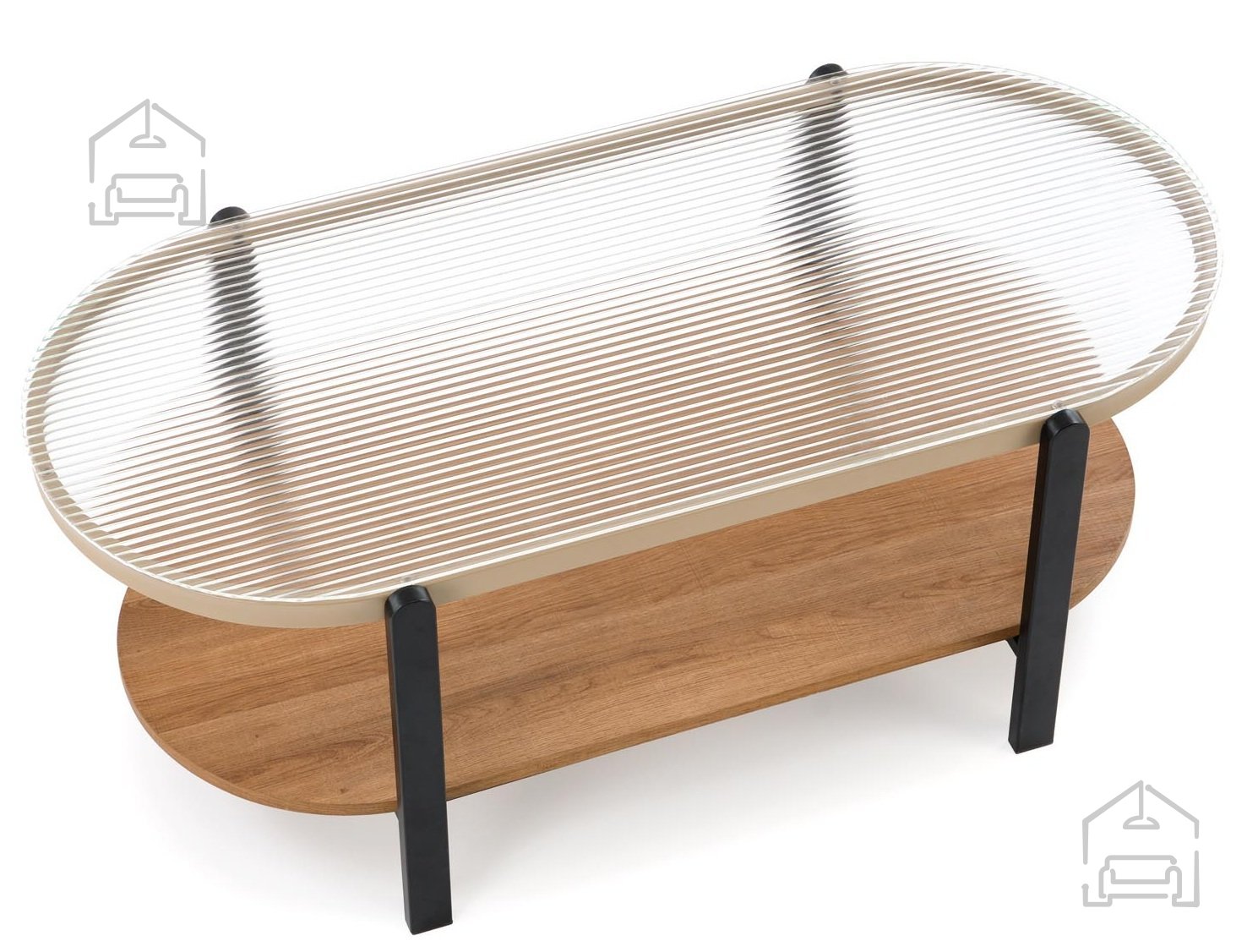 Moderne Kombination aus Glas, Holz und Stahl: Couchtisch Kamala – Halmar.