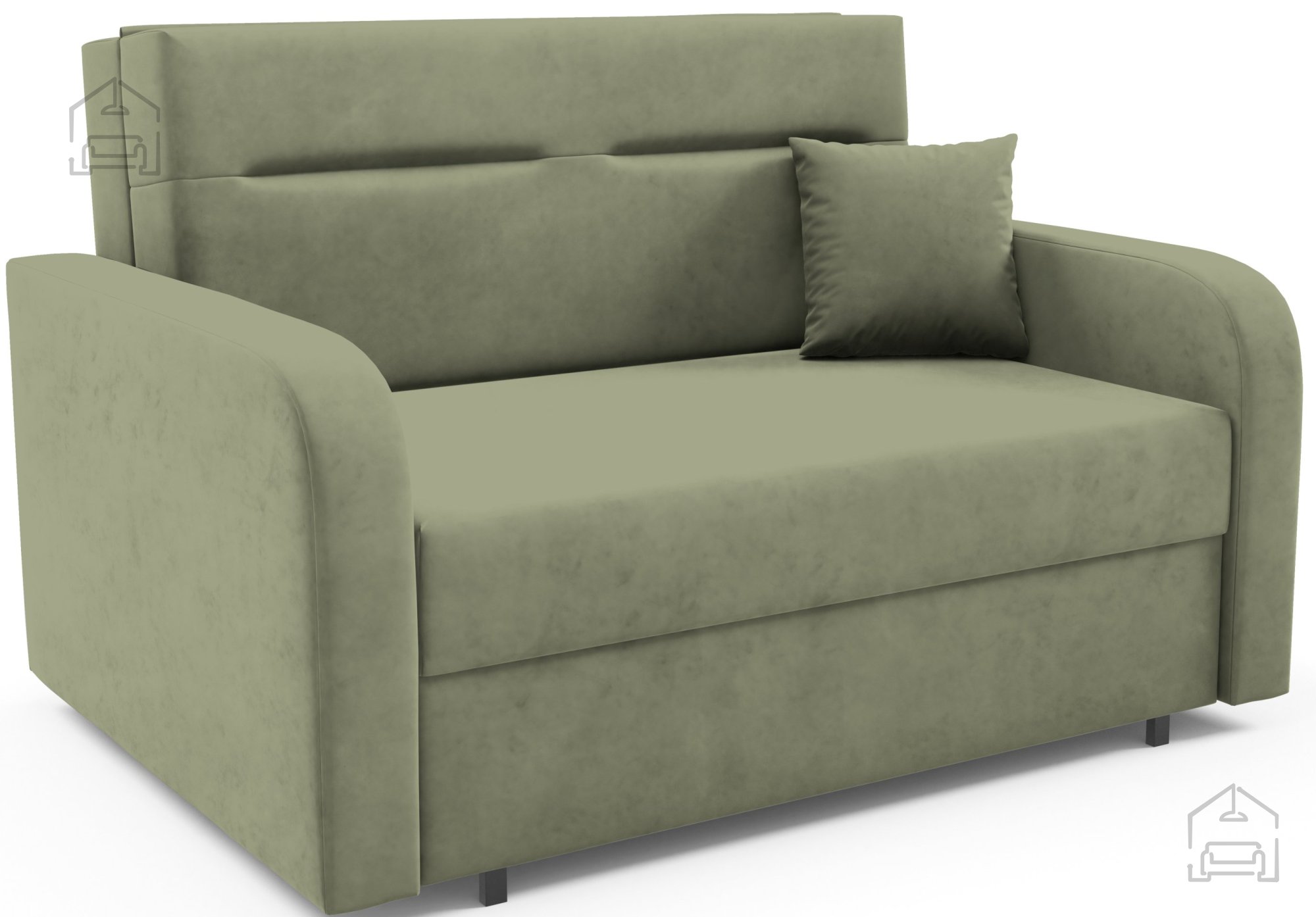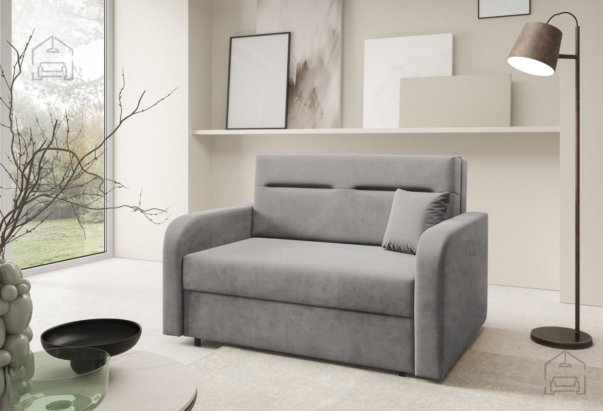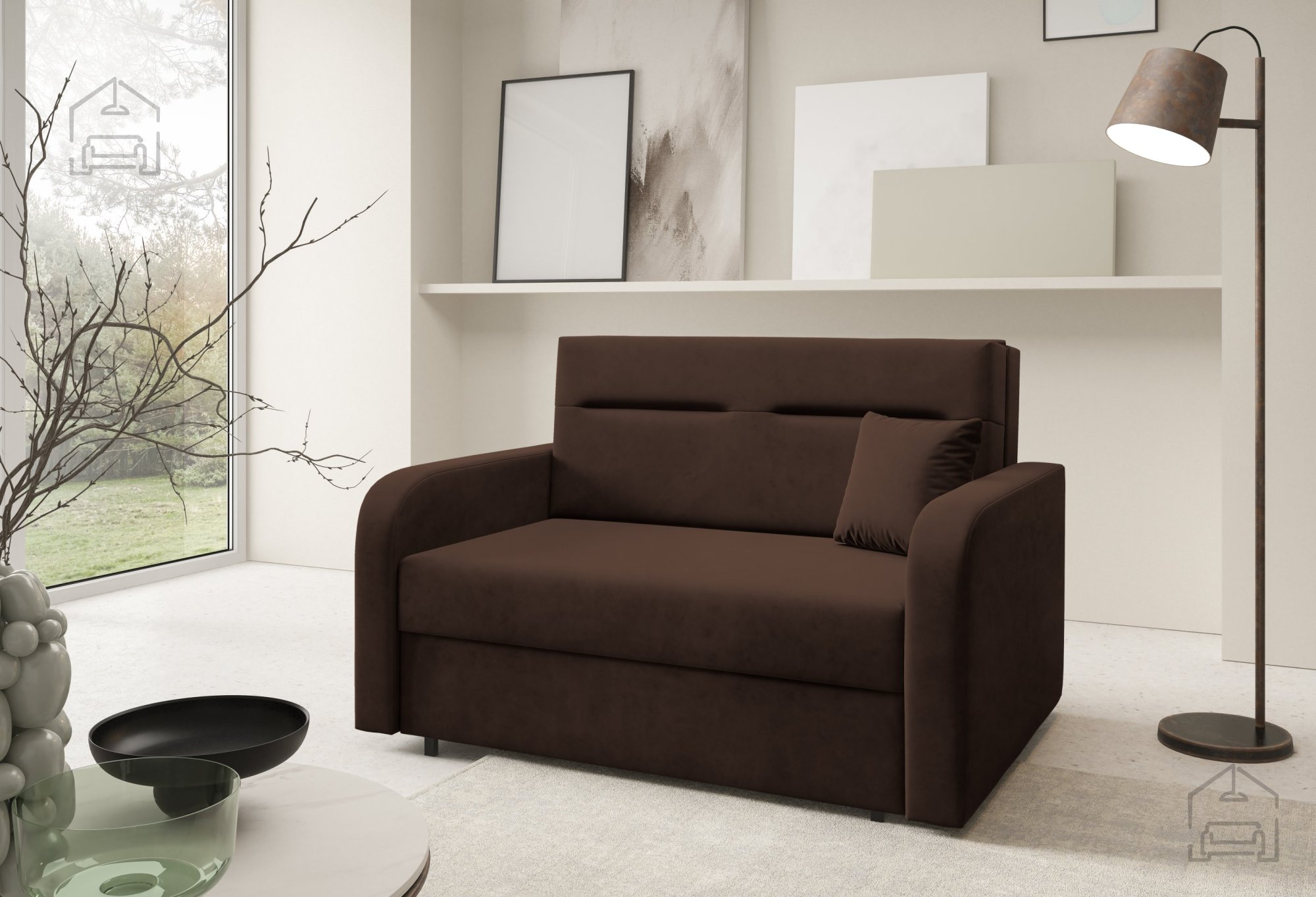 Auf dem Foto ist das Sofa in der Stoffvariante Kronos 14 zu sehen, die mit ihrer samtigen Haptik und dem warmen Erscheinungsbild Gemütlichkeit in den Raum bringt. Das Modell ist in mehreren Farbvarianten erhältlich und lässt sich daher leicht an bestehende Einrichtungen anpassen. Dank seiner kompakten Größe und des schlichten Designs passt es sowohl in Kinder- und Jugendzimmer als auch in kleine Wohnzimmer oder Ferienwohnungen.
