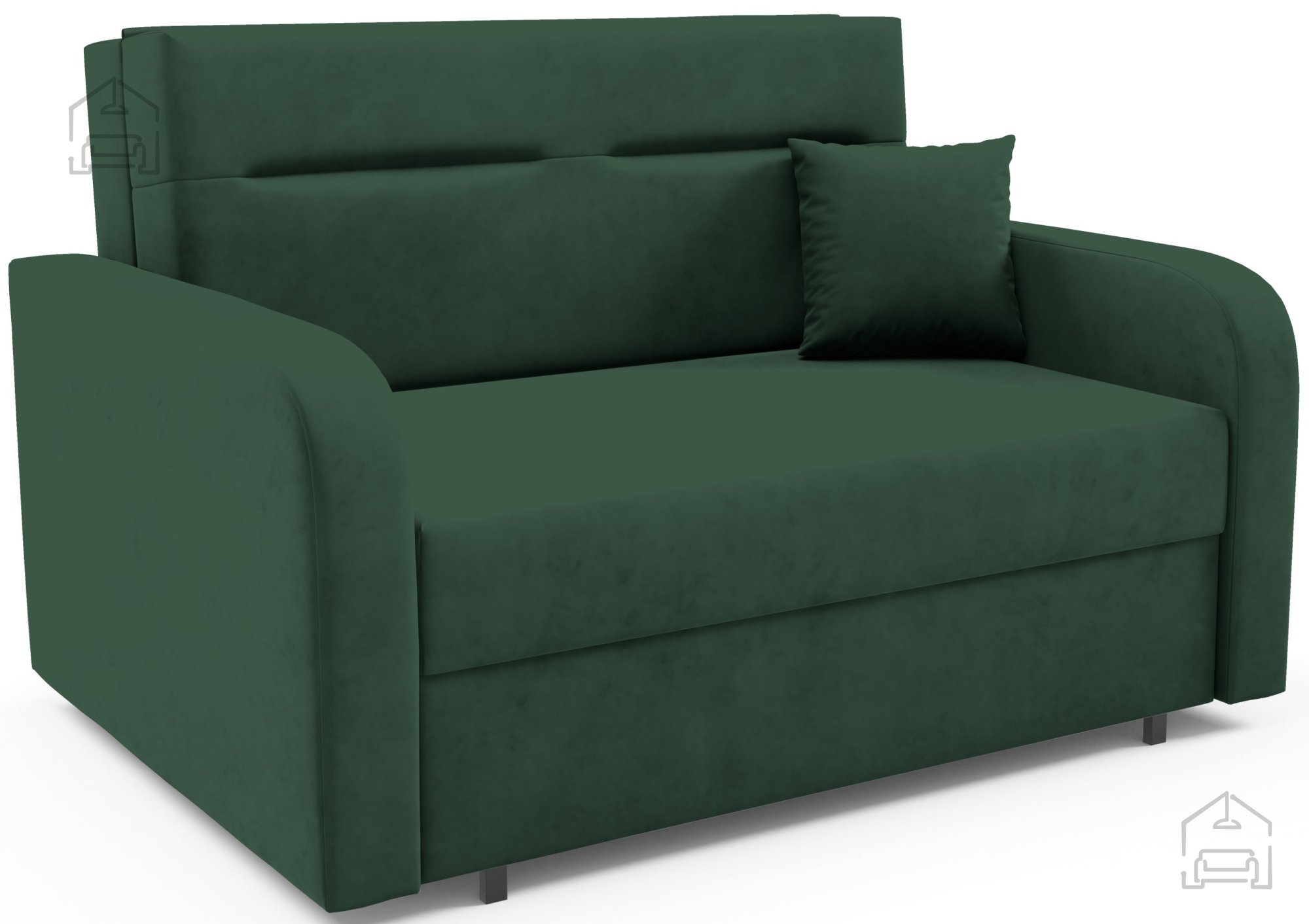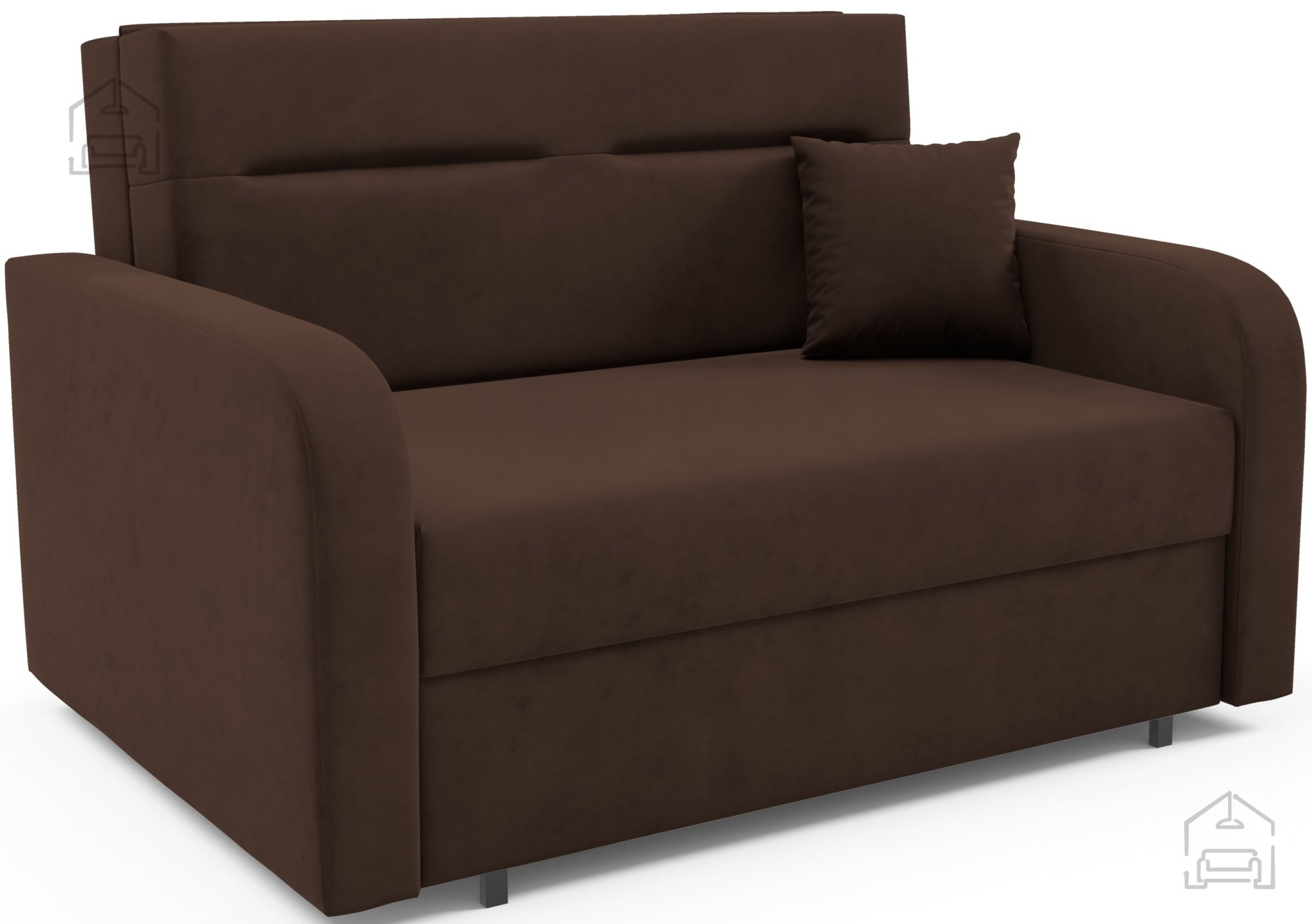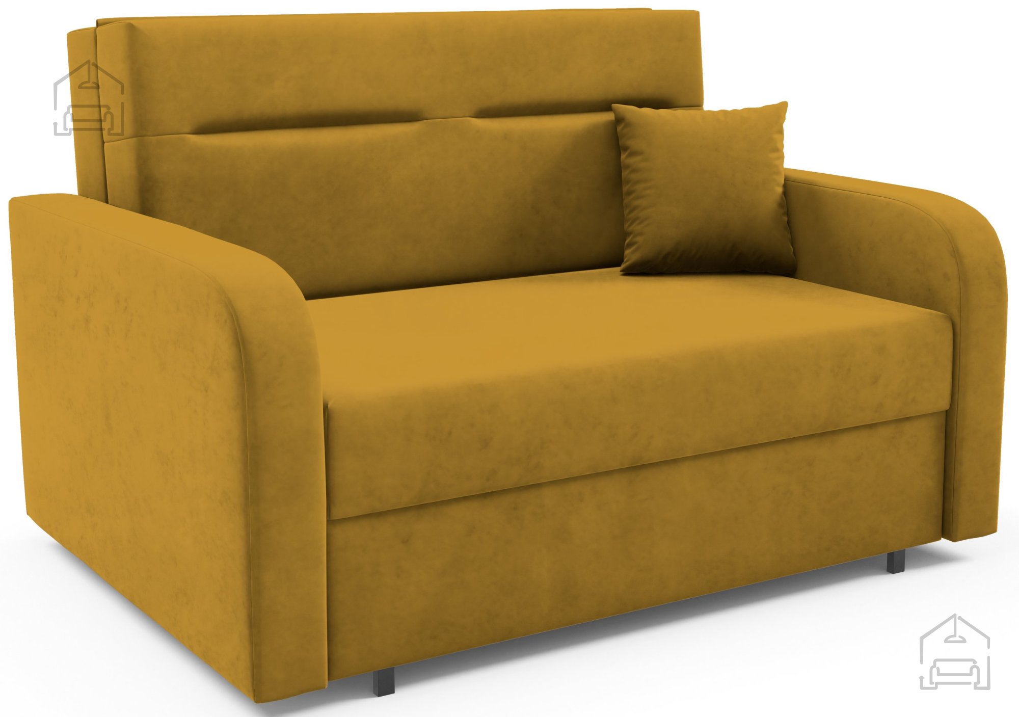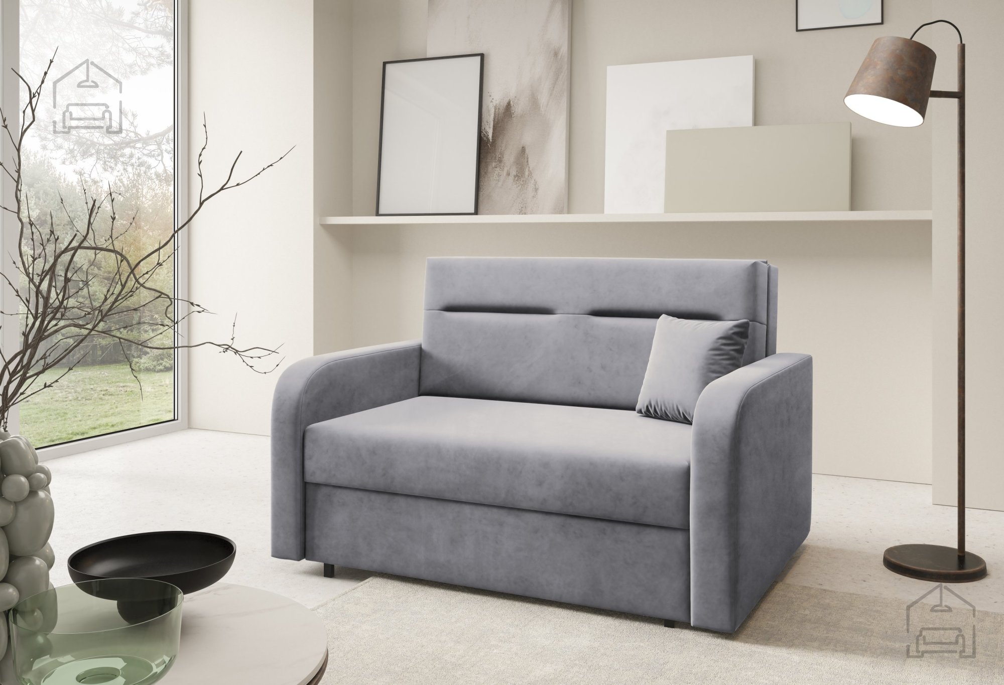Auf dem Foto ist das Sofa in der Stoffvariante Kronos 14 zu sehen, die mit ihrer samtigen Haptik und dem warmen Erscheinungsbild Gemütlichkeit in den Raum bringt. Das Modell ist in mehreren Farbvarianten erhältlich und lässt sich daher leicht an bestehende Einrichtungen anpassen. Dank seiner kompakten Größe und des schlichten Designs passt es sowohl in Kinder- und Jugendzimmer als auch in kleine Wohnzimmer oder Ferienwohnungen.