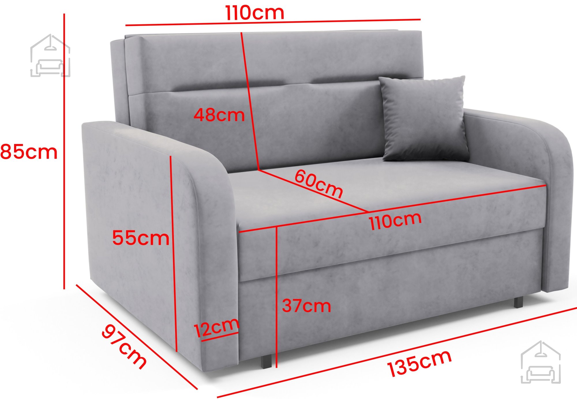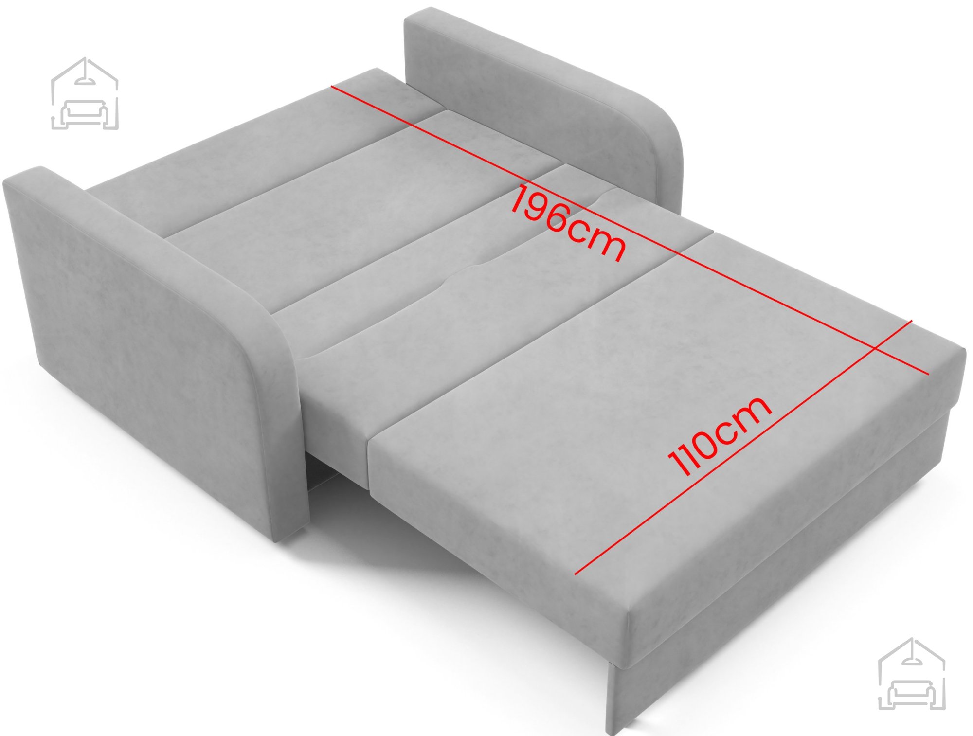 Die Liegefläche misst 110x196 cm und bietet ausreichend Platz für eine erwachsene Person oder zwei Kinder. Das Sofa ist für den täglichen Gebrauch konzipiert: Die stabile Konstruktion sorgt für Langlebigkeit, der Holzrahmen für Robustheit und die hochwertige Schaumpolsterung für ein weiches, aber dennoch stützendes Sitzgefühl. Die maximale Belastbarkeit beträgt 125 kg – ein weiteres Zeichen für die Zuverlässigkeit dieses Modells.