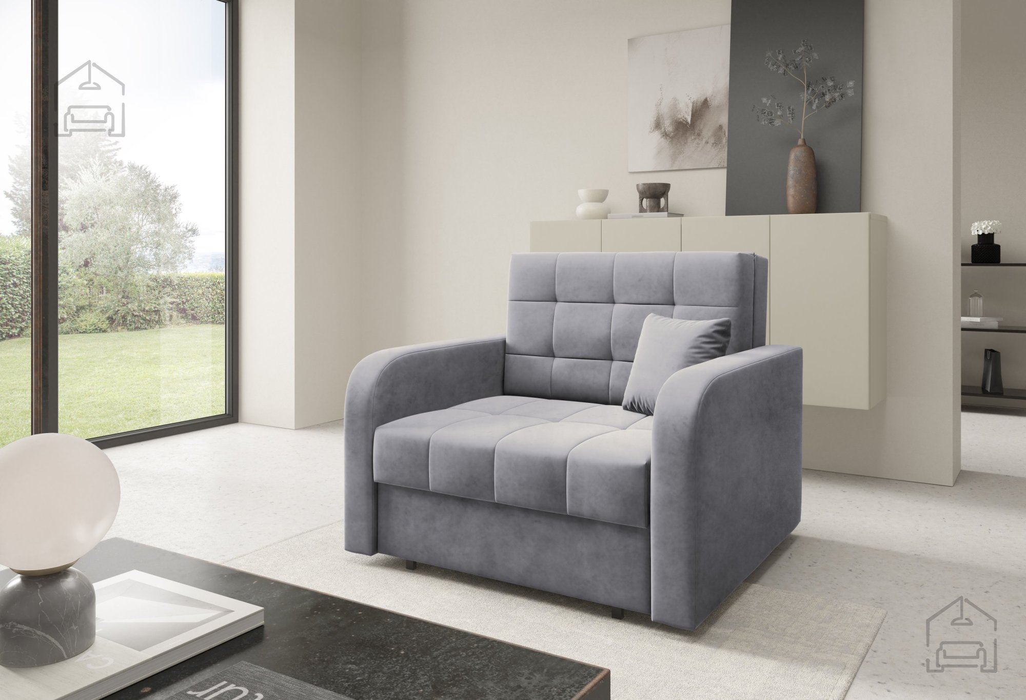 Der Sessel mit Schlaffunktion Haven I ist eine praktische Lösung für jedes Zuhause, in dem Komfort, Funktionalität und eine durchdachte Raumnutzung wichtig sind. Dieses Modell vereint einen gemütlichen Sitzplatz für den Tag mit einer bequemen Schlafgelegenheit für die Nacht. Der hochwertige Teleskop-Mechanismus ermöglicht ein schnelles und müheloses Ausziehen, wodurch der Sessel auch bestens für kleinere Räume, Kinderzimmer oder Gästeecken geeignet ist. Mit seinen kompakten Maßen von 105 cm Breite, 97 cm Tiefe und 85 cm Höhe fügt er sich harmonisch in verschiedene Einrichtungsstile ein, ohne den Raum zu überladen.
