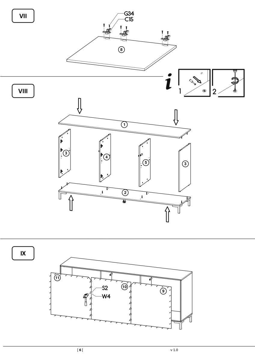 Korpus und Fronten bestehen aus 16 mm starkem, mattem Laminat, das Stabilität und Kratzfestigkeit bietet. Die Kanten sind mit ABS-Band geschützt, was die Haltbarkeit erhöht und Absplitterungen verhindert. Die Kommode steht auf stabilen Kunststofffüßen, die das Gewicht gleichmäßig verteilen und gleichzeitig den Boden vor Kratzern schützen. Alle Materialien sind auf Langlebigkeit und einfache Pflege ausgelegt, damit die Kommode über Jahre hinweg ihren gepflegten Look behält.
