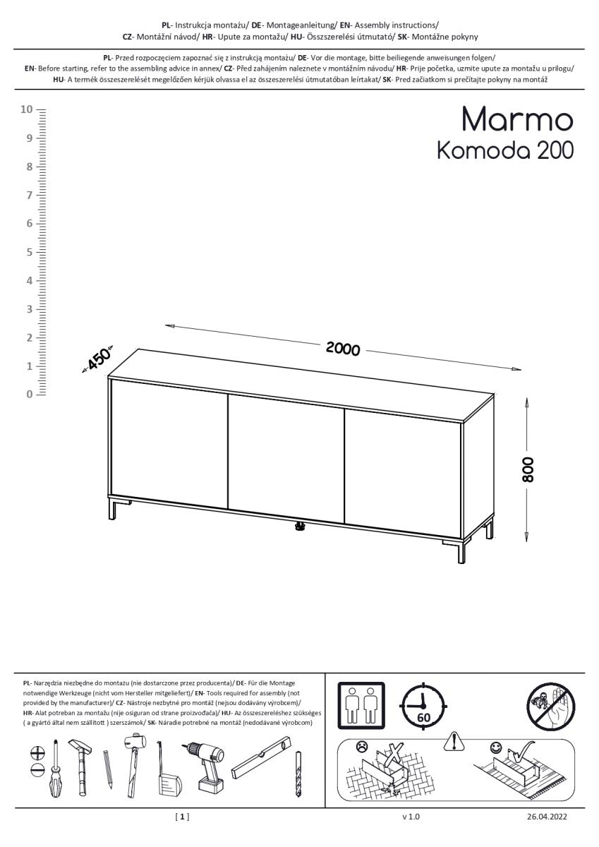 Matte laminierte Platte 200×45×80,5 cm: Kommode Marmo KOM200/3d – Halmar.